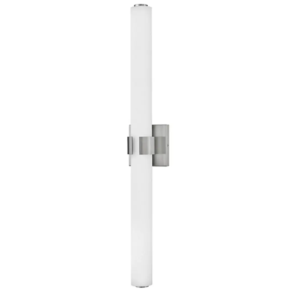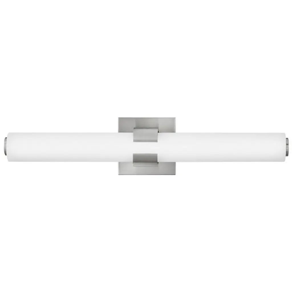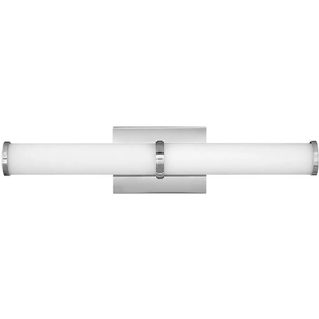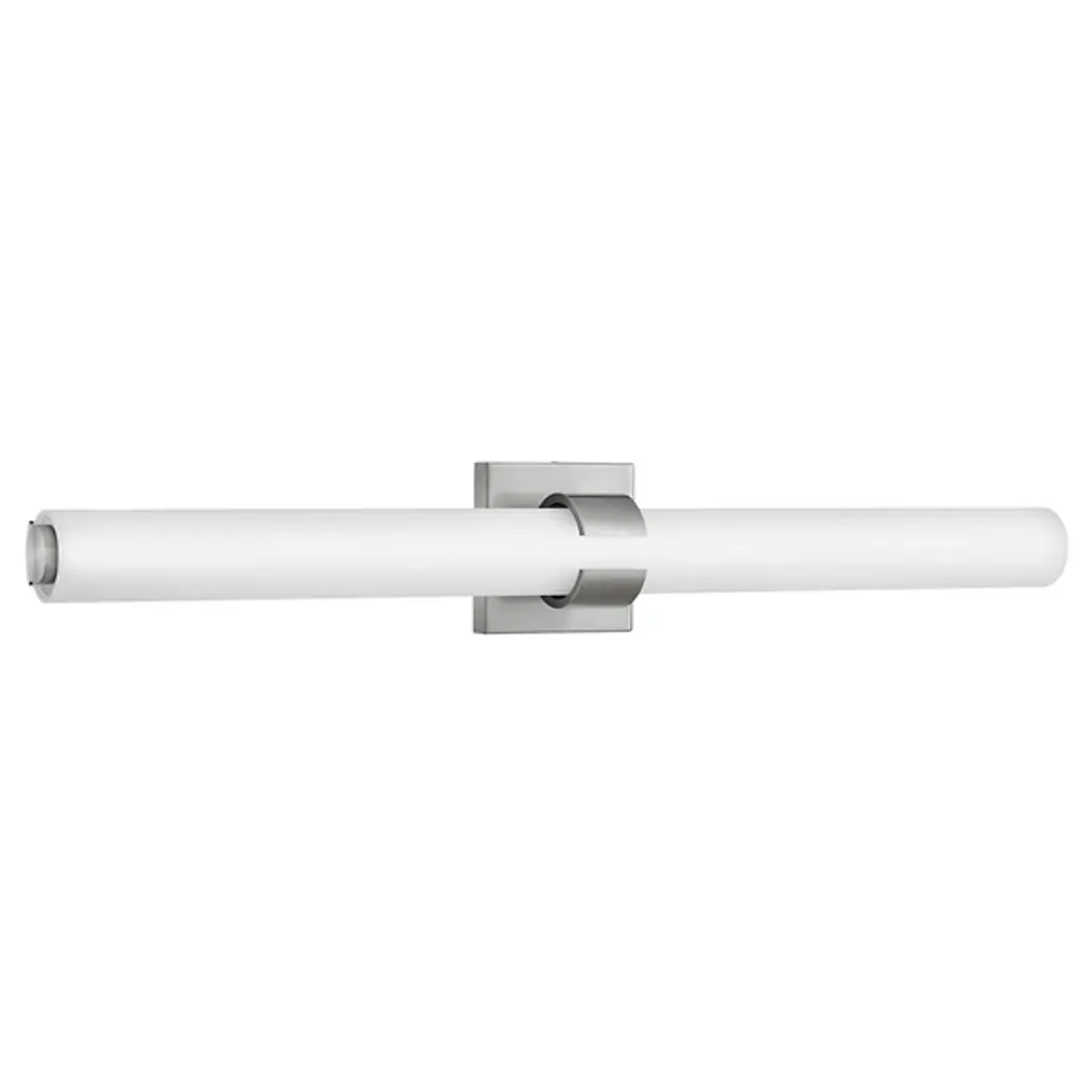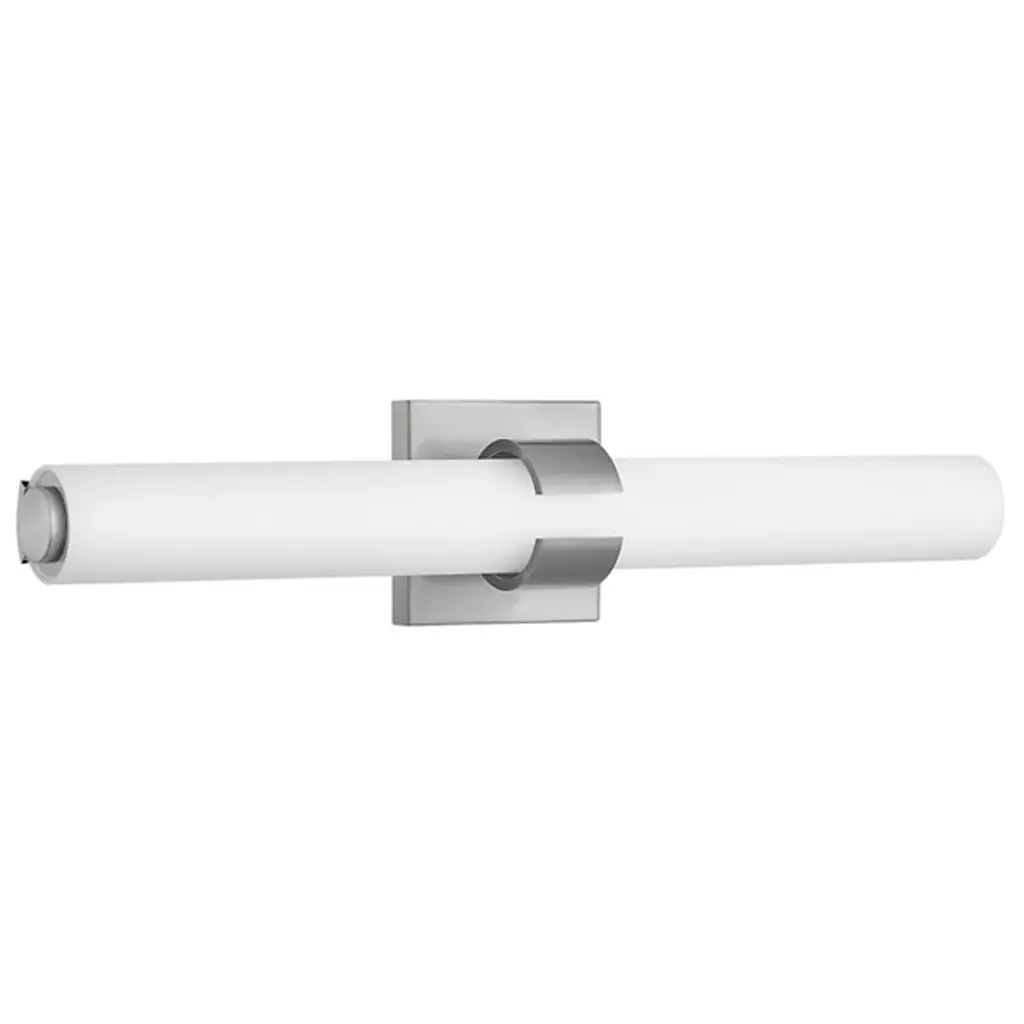 Raising the bar for quality and understated style in the bath bar canon. The Aiden LED Vanity Light Light by Hinkley Lighting is an excellent piece for adding a look to your bathroom that’s both subtle and luxurious, in addition to useful accent lighting. The bath bar’s subtle Metal frame acts as both a stable support system and a source of visual contrast with the Etched White Glass shade, fashioned into a cylindrical shape and oriented horizontally.