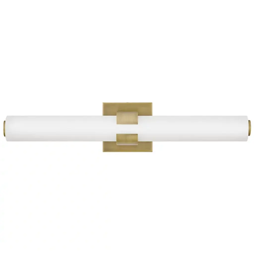Raising the bar for quality and understated style in the bath bar canon. The Aiden LED Vanity Light Light by Hinkley Lighting is an excellent piece for adding a look to your bathroom that’s both subtle and luxurious, in addition to useful accent lighting. The bath bar’s subtle Metal frame acts as both a stable support system and a source of visual contrast with the Etched White Glass shade, fashioned into a cylindrical shape and oriented horizontally.