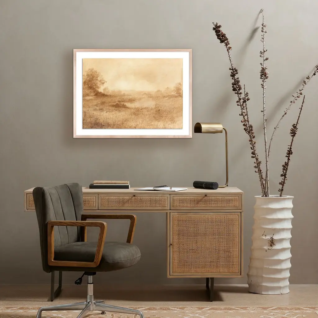 The perfect sepia landscape, this piece features a natural maple frame by artist Aileen Fitzgerald.