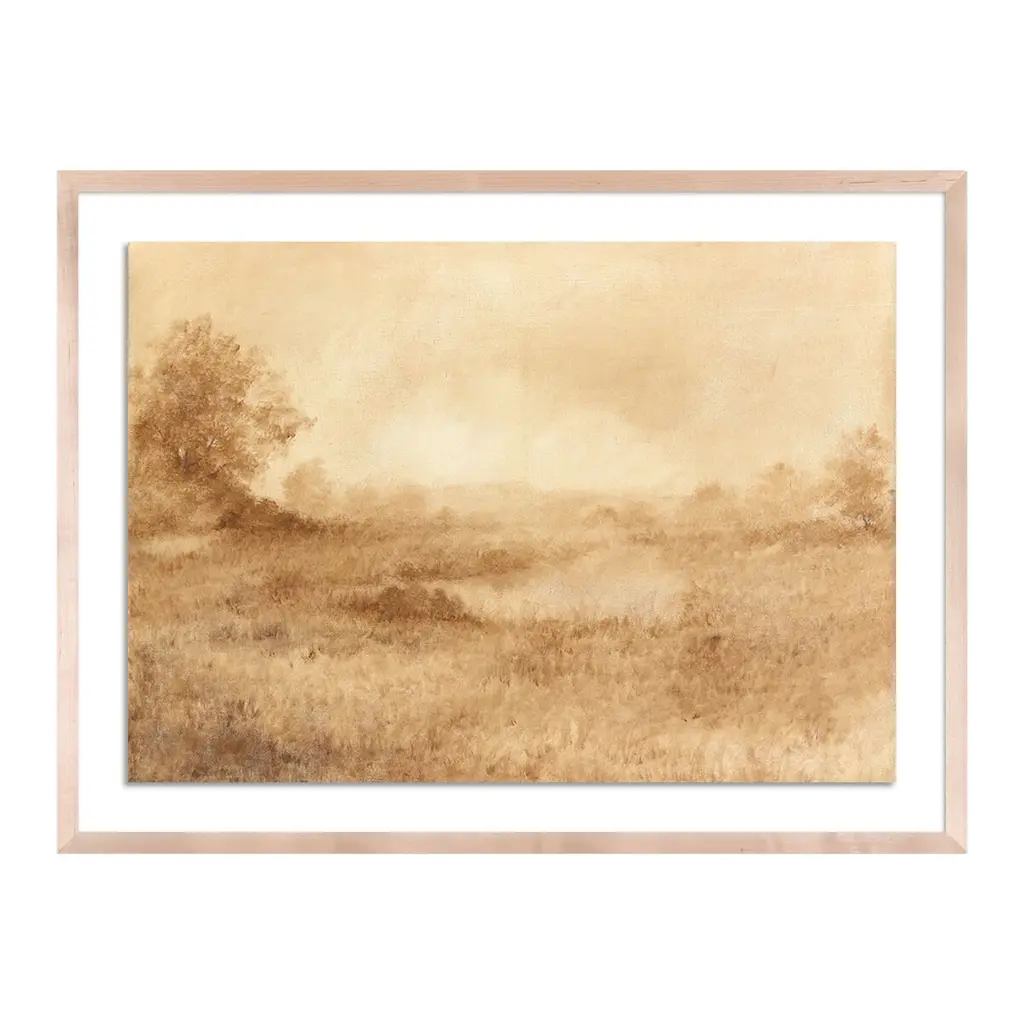 The perfect sepia landscape, this piece features a natural maple frame by artist Aileen Fitzgerald.