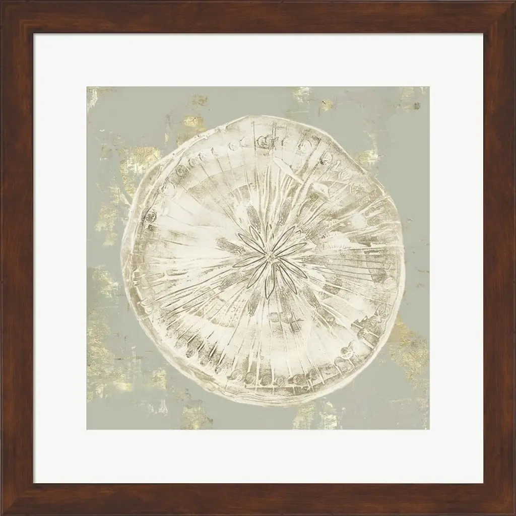 Cone Shells III by Aimee Wilson is a high quality piece of framed artwork. The finished size of this piece is 20.5" X 20.5". It has a Slim Solid Pecan Brown Flat with Satin Finish frame, is single matted and finished with high quality Acrylic Plexiglass.