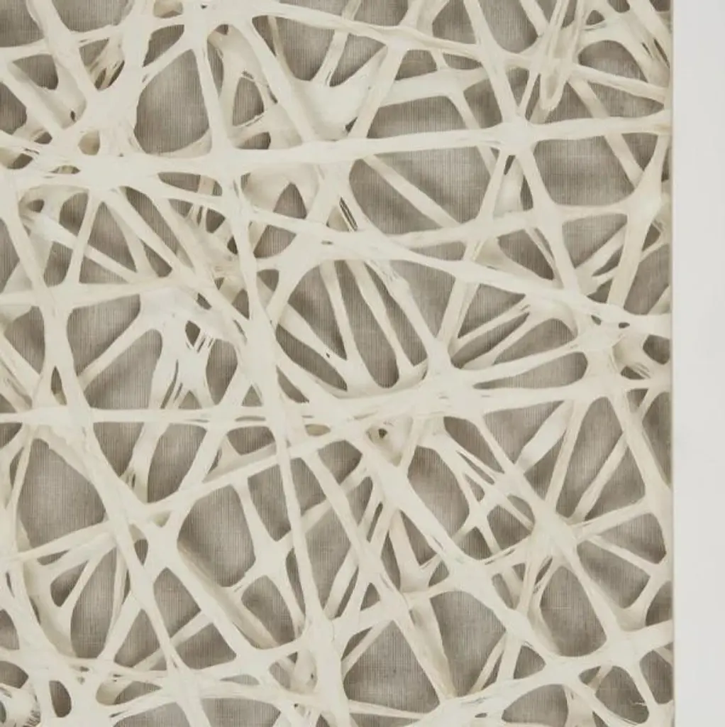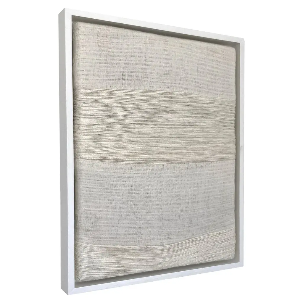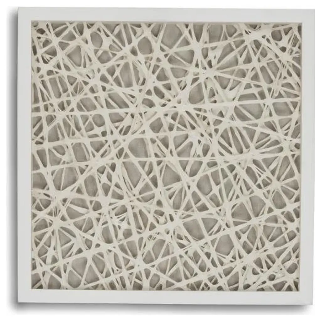 Transform your home with the grace and modernity of this Abstract Paper Framed Art Wall Decor. The serene alabaster color invites a sense of peace and sophistication, making it an ideal choice to elevate your space. Expertly crafted from a deluxe mix of materials"”linen, polished nickel, velvet, glass, and fir"”this piece is designed to offer both style and endurance. The handmade paper art inside provides a unique texture and depth that accentuates its abstract motifs. Perfectly framed with polished nickel, this piece effortlessly blends modern flair with classic charm. Its dimensions of 24 by 24 inches make it versatile enough to fit in various spaces, from your cozy living room to your professional office. Whether placed alone as a focal point or as part of a larger gallery wall, this compelling art piece instills intrigue and creativity into any setting. It"™s not just decor, it"™s a statement"”a reflection of taste and sophistication. - Dimensions: 24H 24W 1.75D - Condition: New - Contemporary design with handmade elements - Sturdy glass and fir construction - Polished nickel framing for modern appeal - Versatile alabaster tones suit any room décor