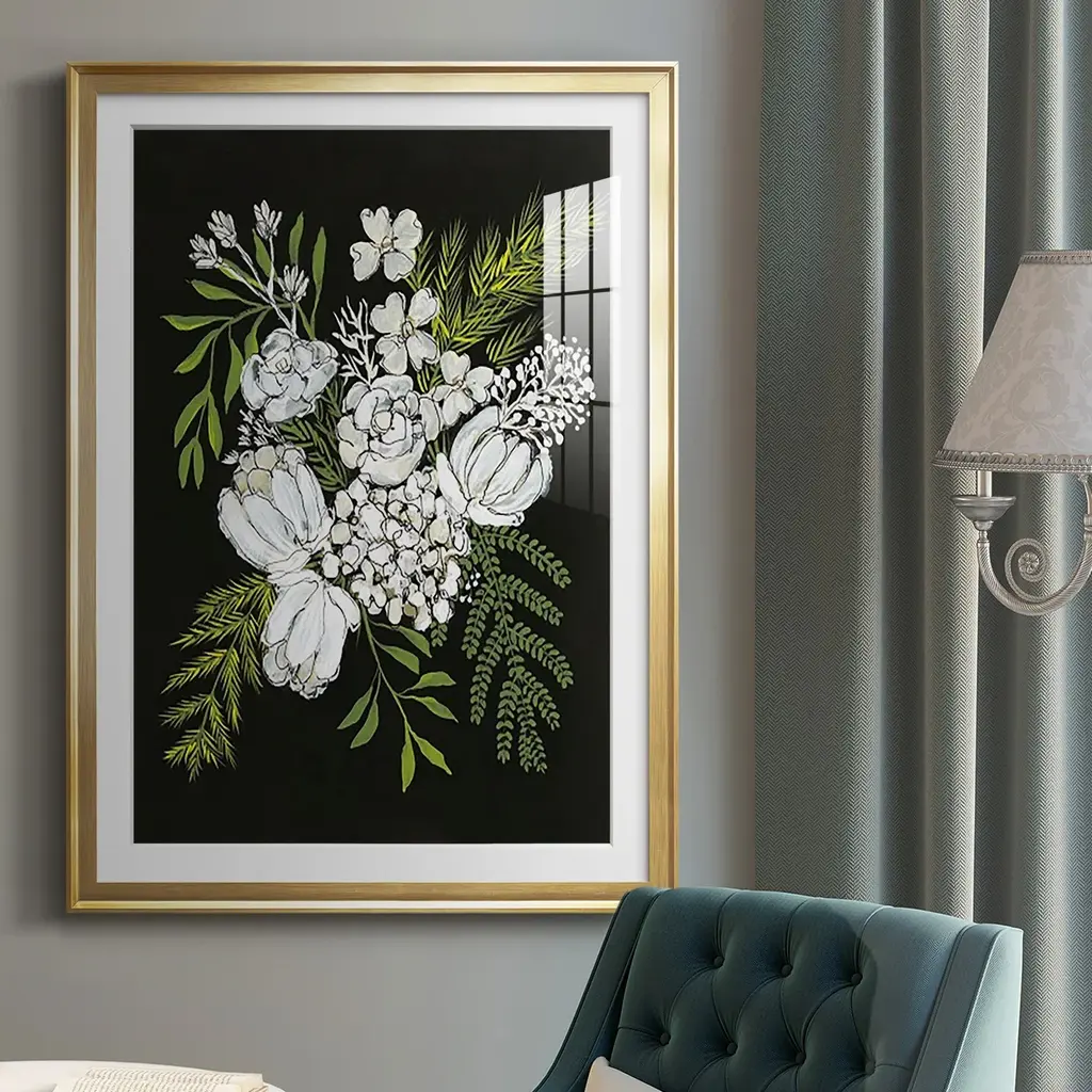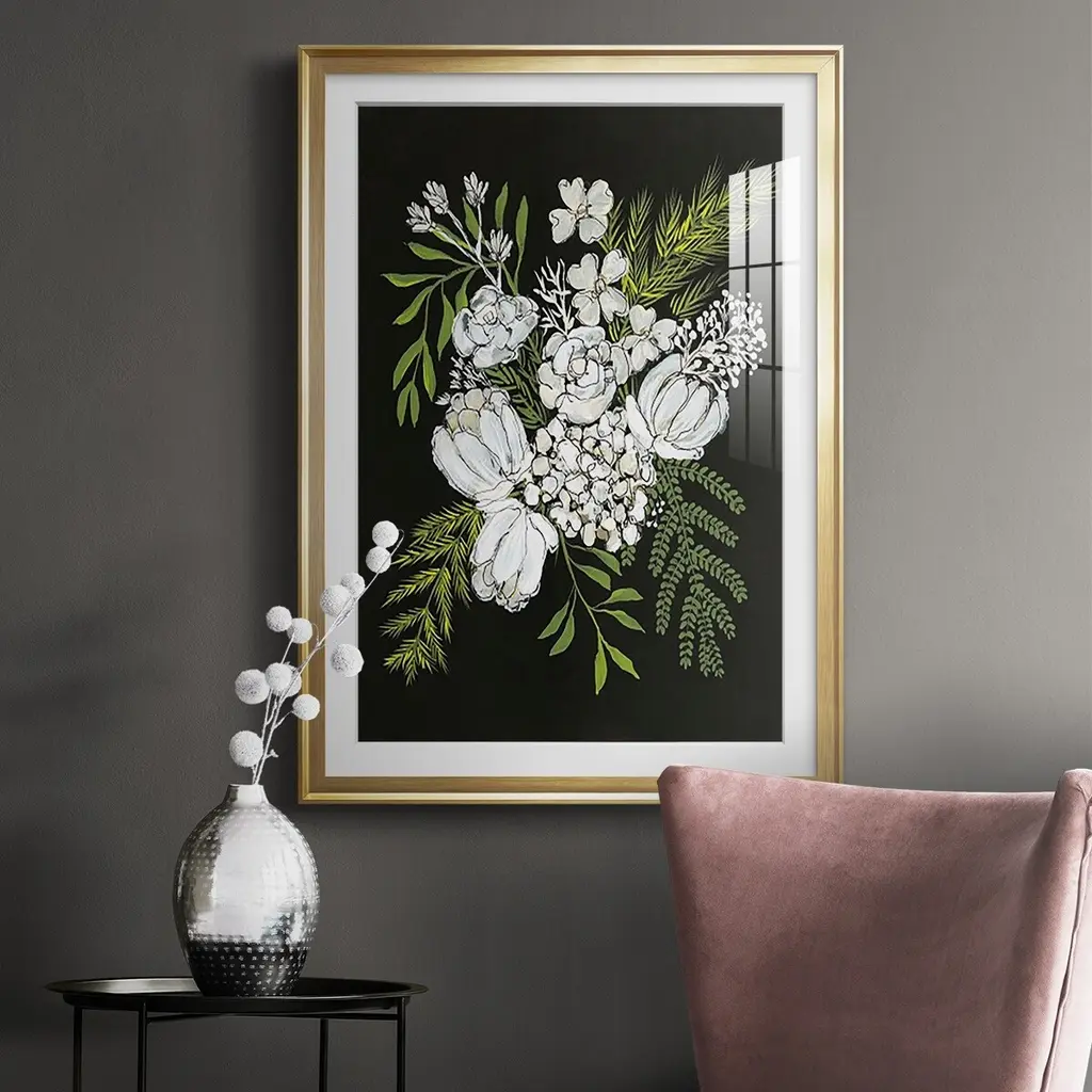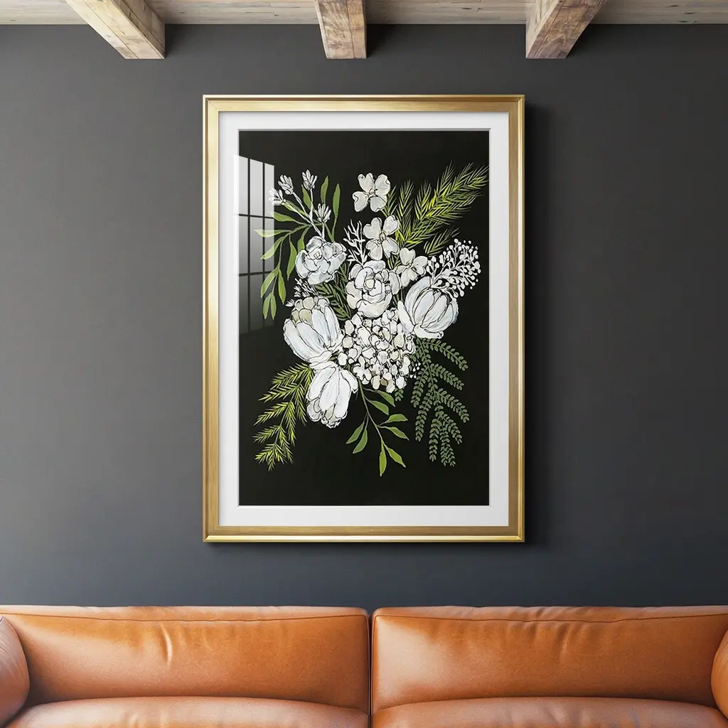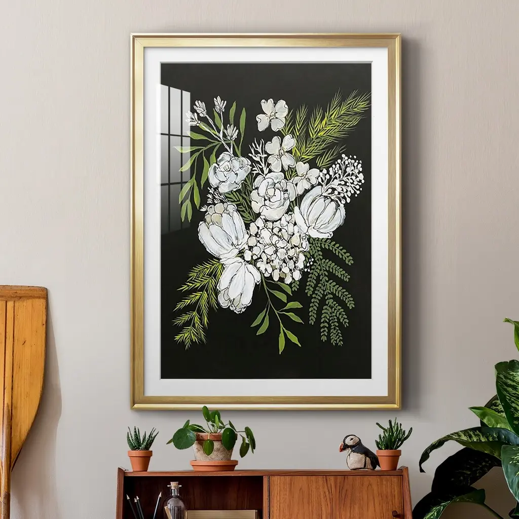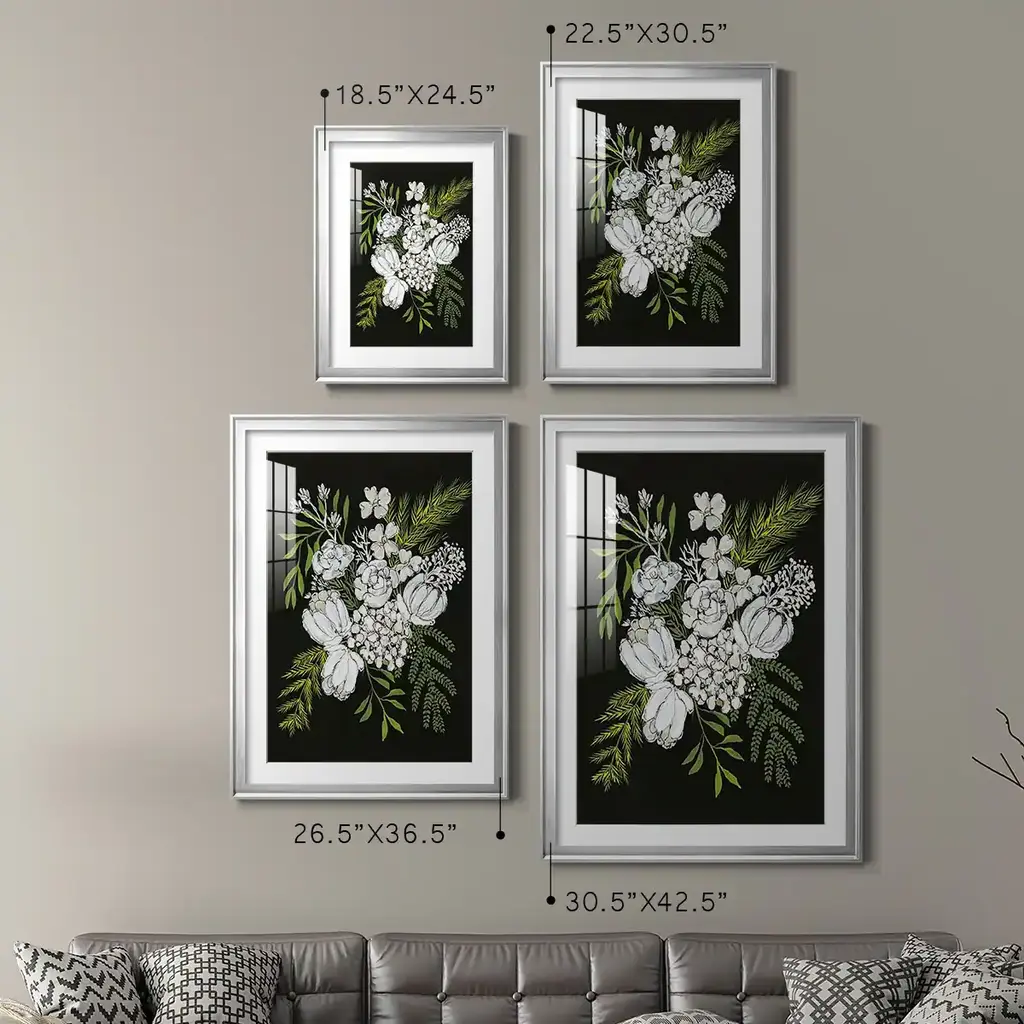 Alabaster Bouquet II Premium Framed Print - Ready to Hang A Premium Framed Print created to last. Framed in distressed wood and available in an array of sizes and colors Featuring a beveled a solid wood stretcher bar, each piece comes ready to hand 4 SIZES AVAILABLE 30.5''X42.5'' - Overall Size 26.5'X36.5'' - Overall Size 22.5''x30.5'' - Overall Size 18.5''x24.5'' - Overall Size Each piece is made to order. Each piece comes with hanging hardware. Made in the USA Ready to Hang Giclee Paper Print Acrylic Glass Beveled Matt Board