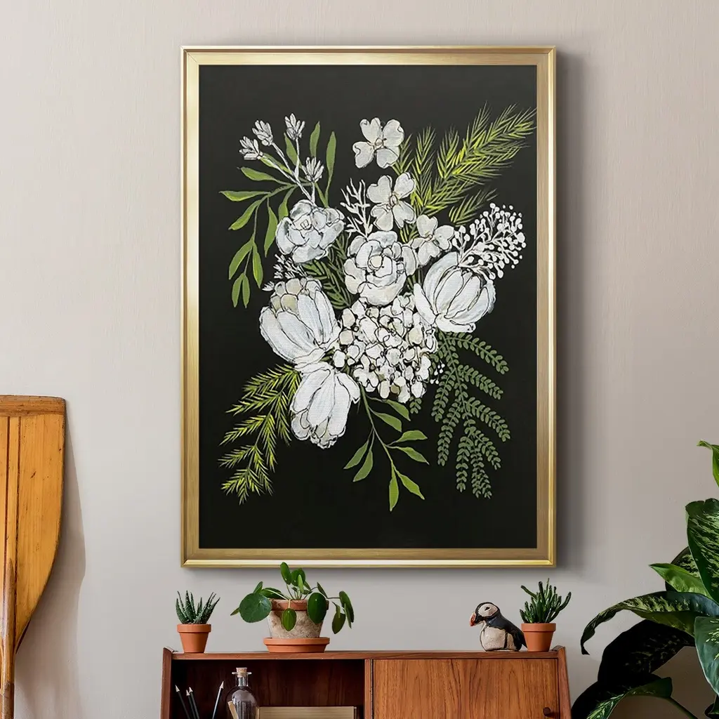 Alabaster Bouquet II Premium Framed Print - Ready to Hang A Premium Framed Print created to last. Framed in distressed wood and available in an array of sizes and colors Featuring a beveled a solid wood stretcher bar, each piece comes ready to hand 4 SIZES AVAILABLE 30.5''X42.5'' - Overall Size 26.5'X36.5'' - Overall Size 22.5''x30.5'' - Overall Size 18.5''x24.5'' - Overall Size Each piece is made to order. Each piece comes with hanging hardware. Made in the USA Ready to Hang