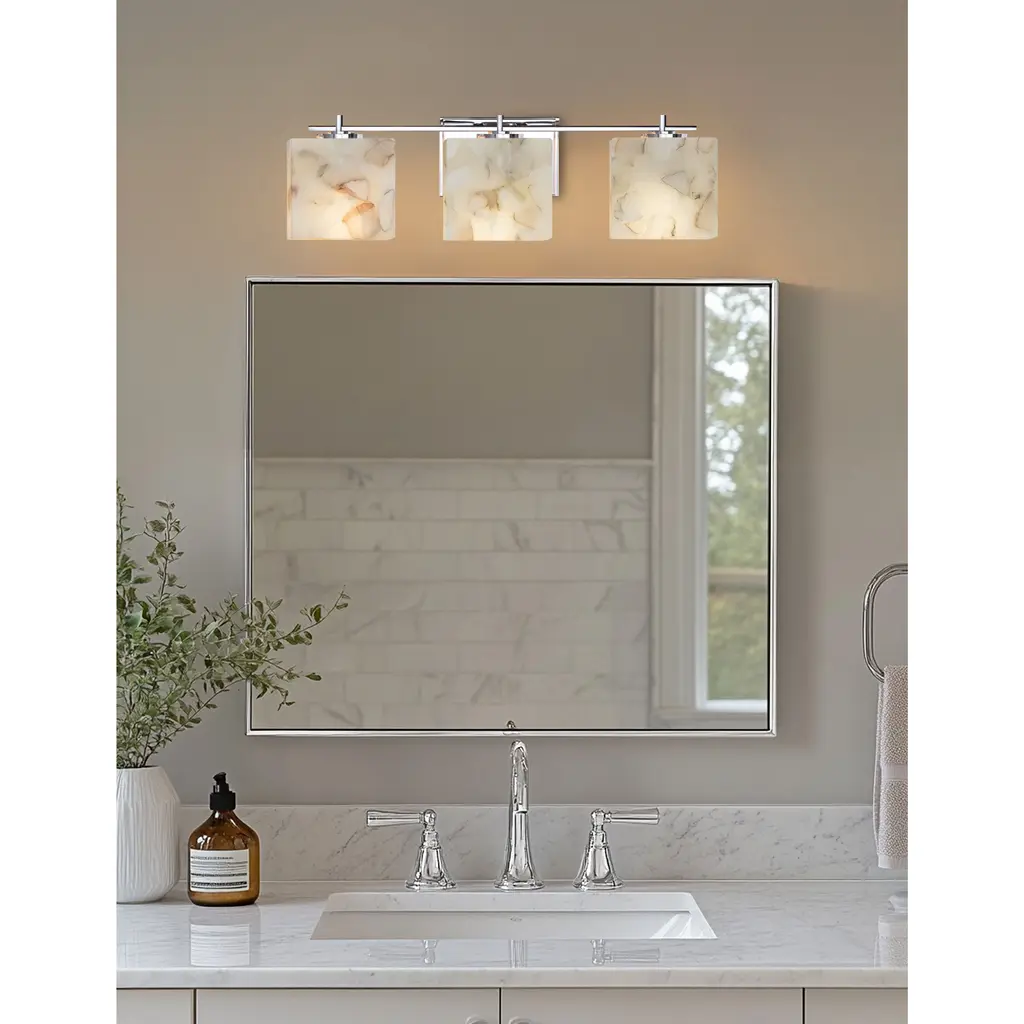 Alabaster Rocks 3 Light 25.75 Inch Polished Chrome Vanity Light Wall Light In Led, Rectangle