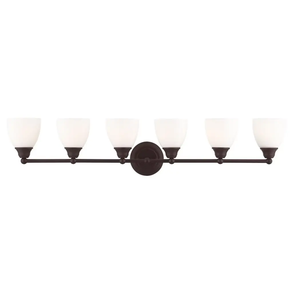 Alabaster Rocks 6 Light 49 Inch Brushed Nickel Vanity Light Wall Light In Led, Square With Flat Rim