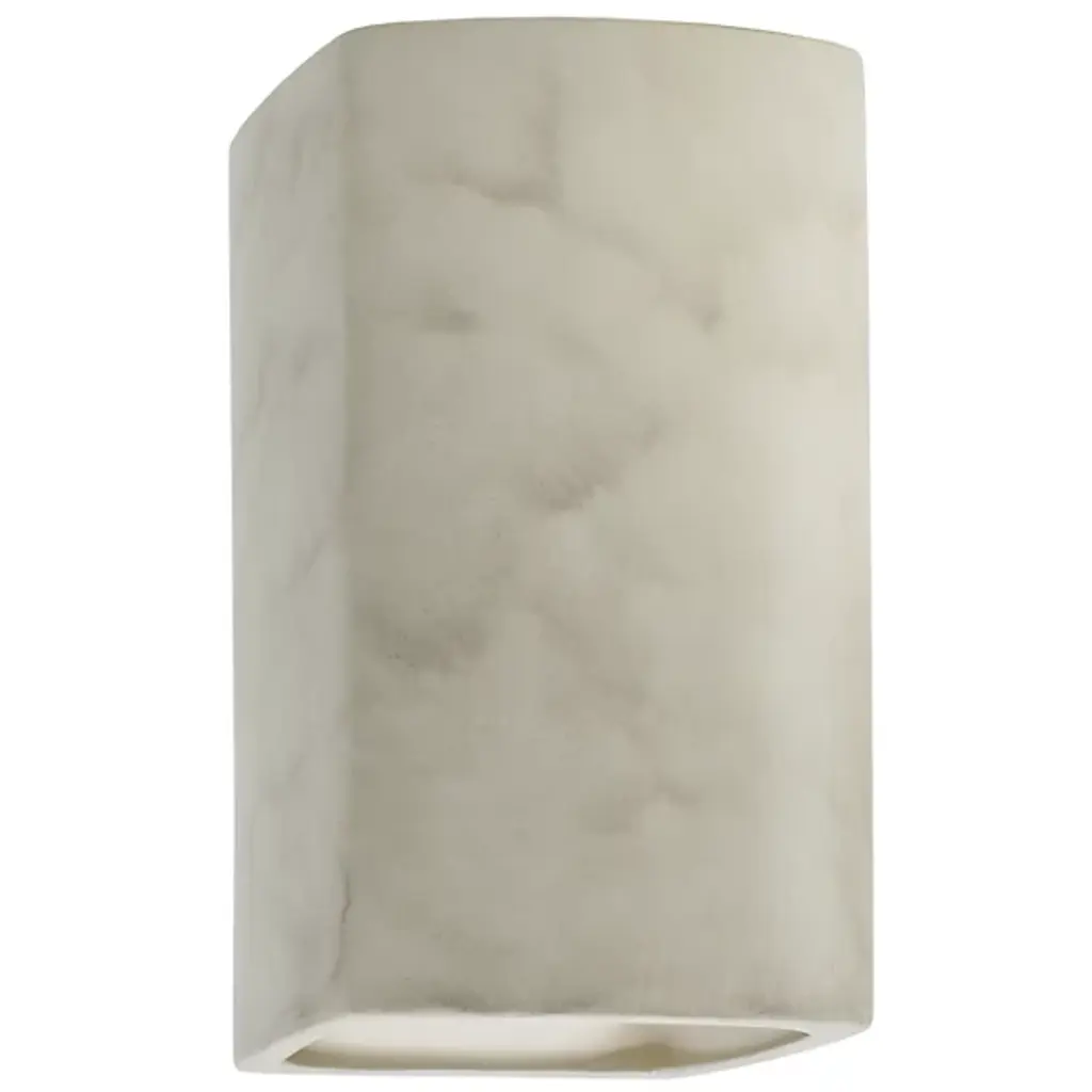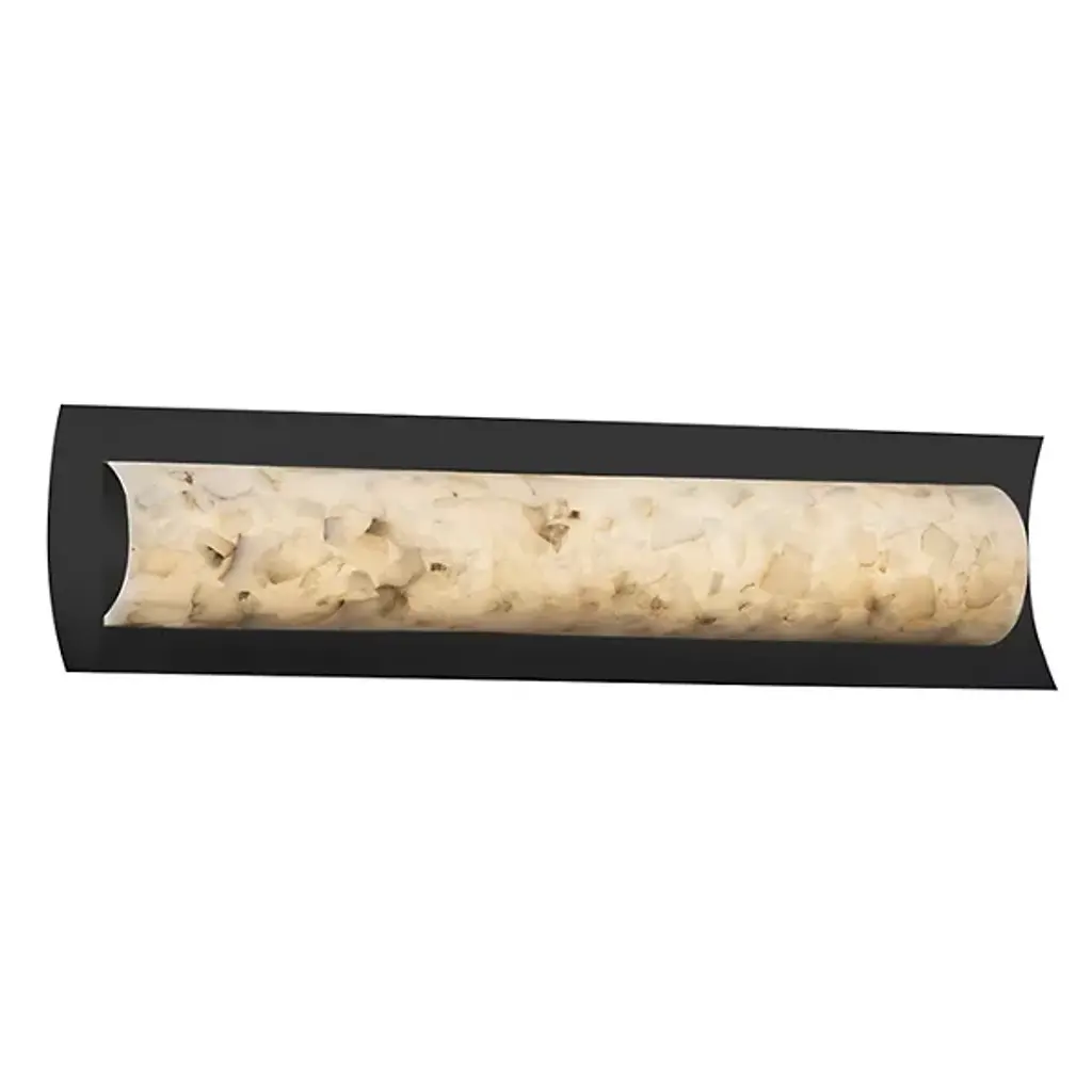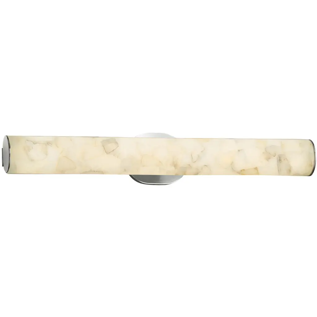 Draw a straight line to sophistication with the Alabaster Rocks! Lineate LED Vanity Light. Showcasing Alabaster Stone shavings set in Resin against a curved wall plate, it installs vertically or horizontally. The stunning mosaic-like bath bar is the ideal luminary for the top and/or sides of the bathroom vanity mirror.