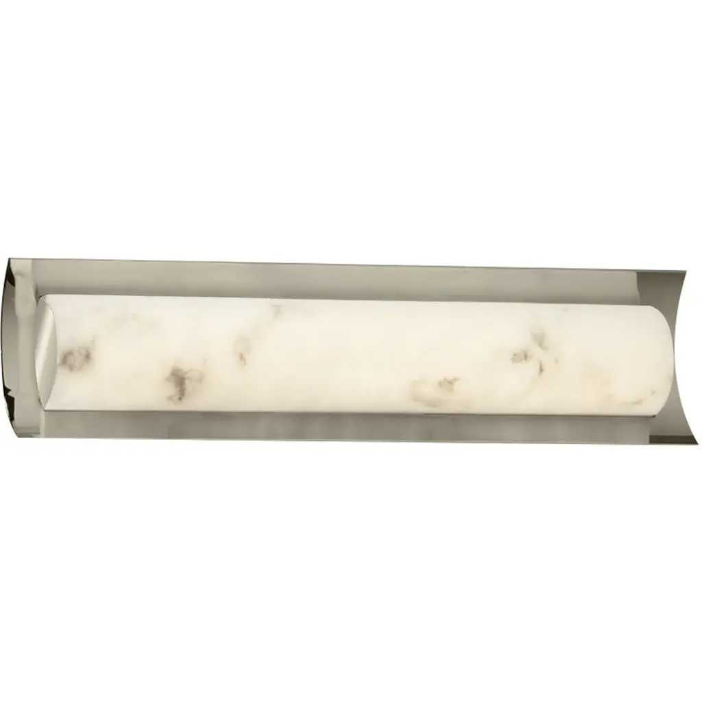 Draw a straight line to sophistication with the Alabaster Rocks! Lineate LED Vanity Light. Showcasing Alabaster Stone shavings set in Resin against a curved wall plate, it installs vertically or horizontally. The stunning mosaic-like bath bar is the ideal luminary for the top and/or sides of the bathroom vanity mirror.