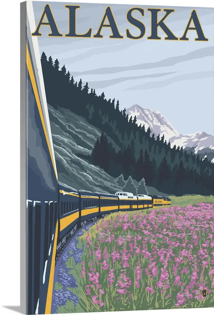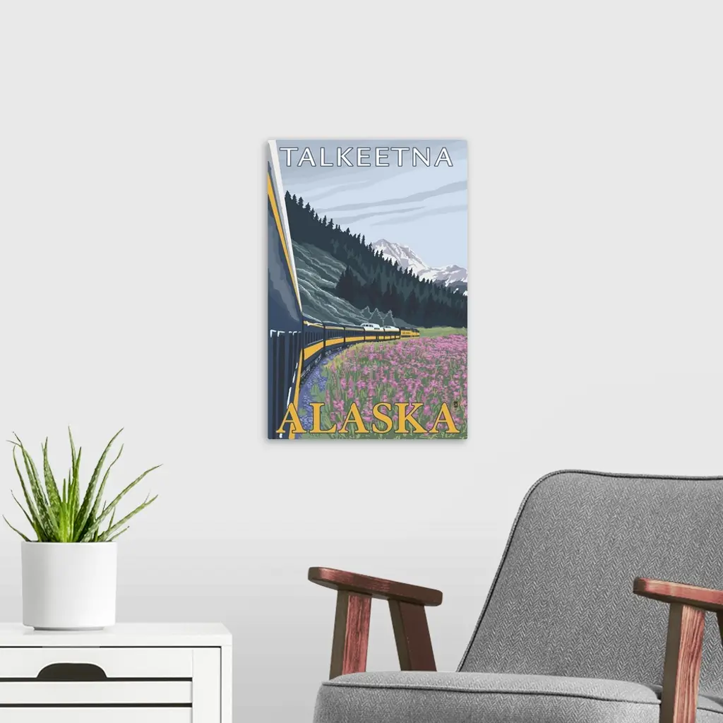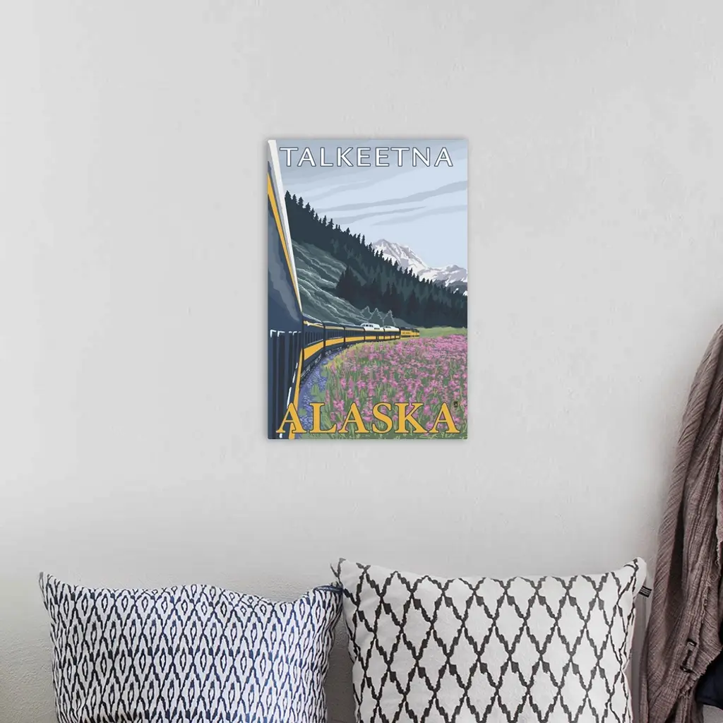 Alaska Railroad Scene - Talkeetna, Alaska: Retro Travel Poster wall art for home and office decor. Discover canvas art prints, photos, mural, big canvas art and framed wall art in GreatBigCanvas.com's varied collections.