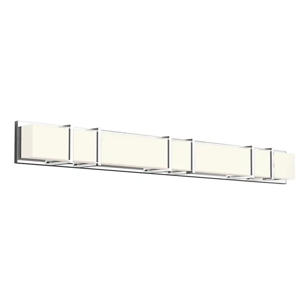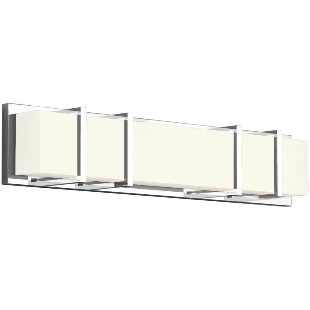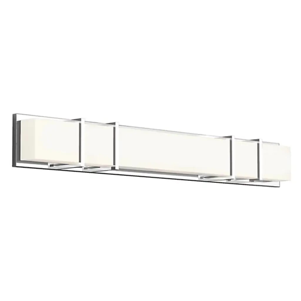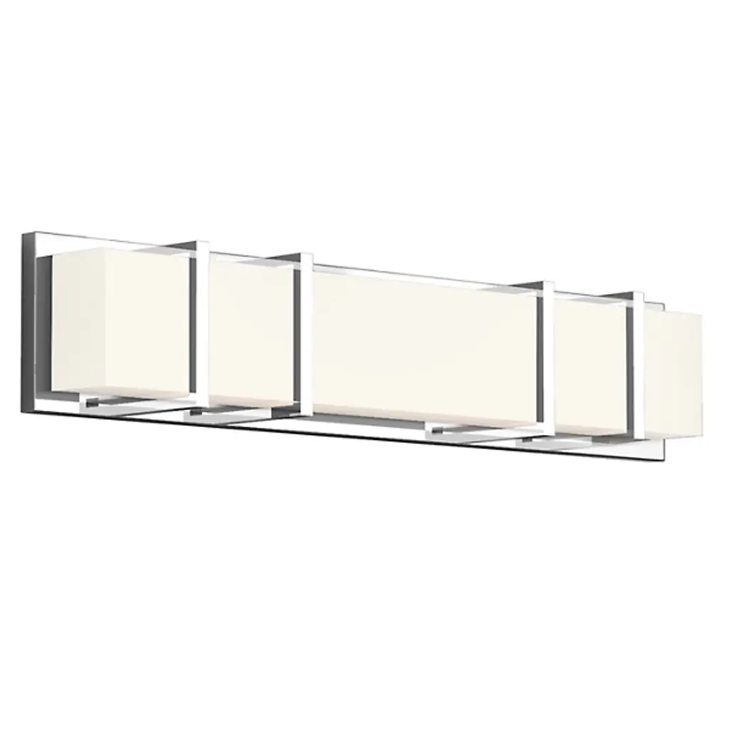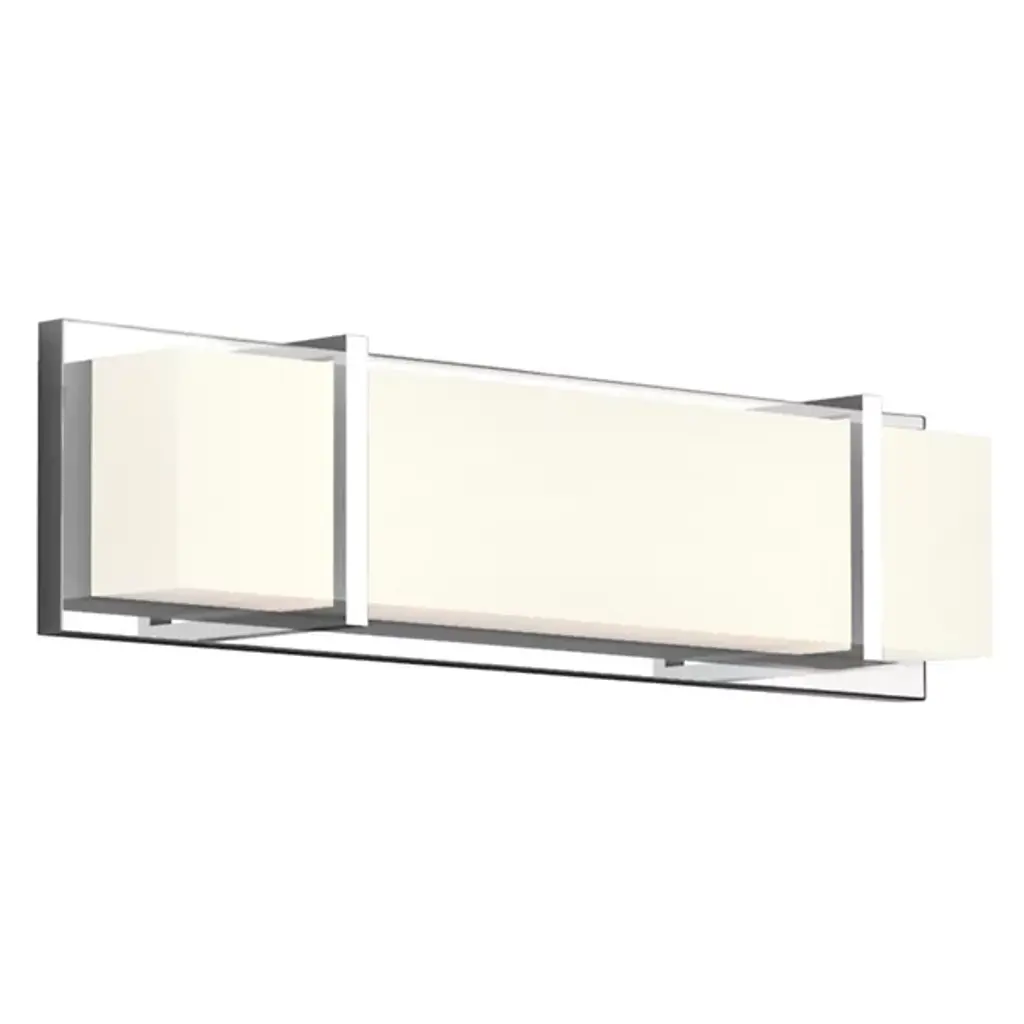 Sleek and comforting, the Alberni LED Vanity Light from Kuzco Lighting is a modern piece with clean, crisp lines that match well in a streamlined bathroom space. A metal rectangular backplate mounts flush with the wall. A series of clasps along the length of the piece seemingly secure an elongated opal acrylic diffuser that matches the shape of the backplate. An LED board within shines warm, energy-efficient light throughout the space. With the ability to mount vertically or horizontally, the Alberni is a versatile piece perfect for a bathroom vanity.