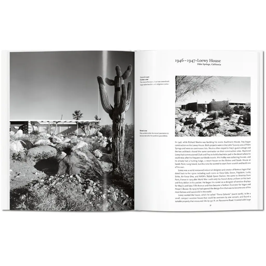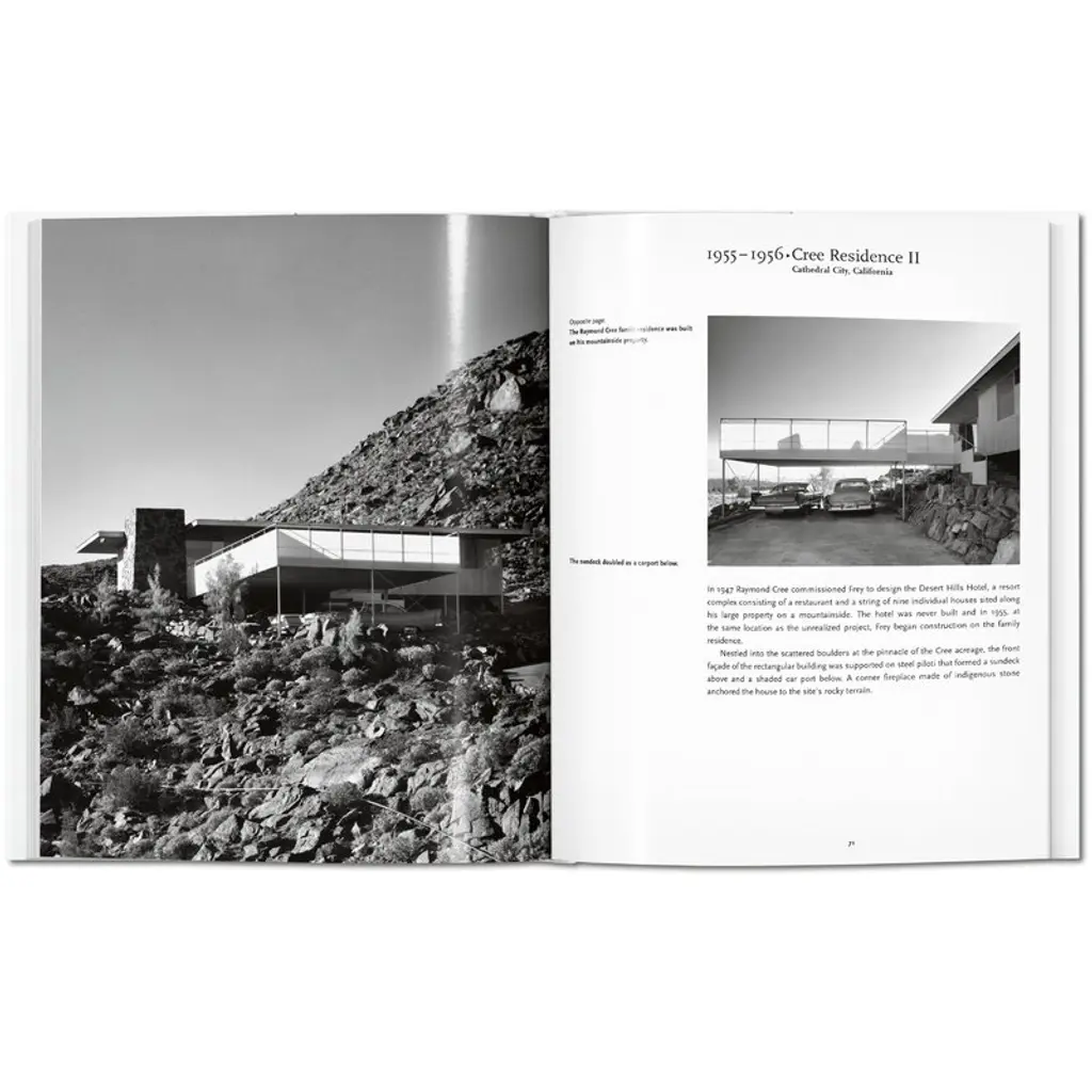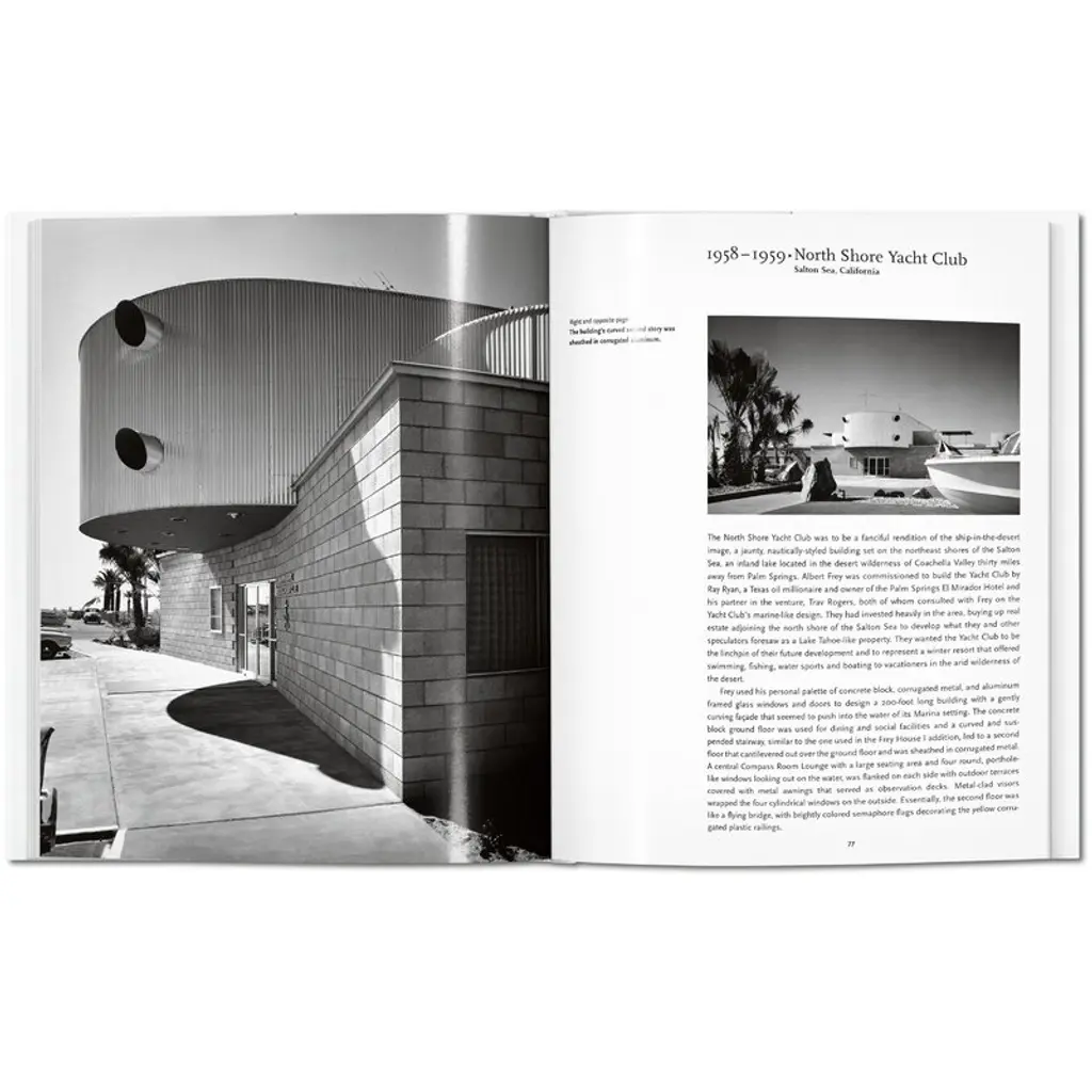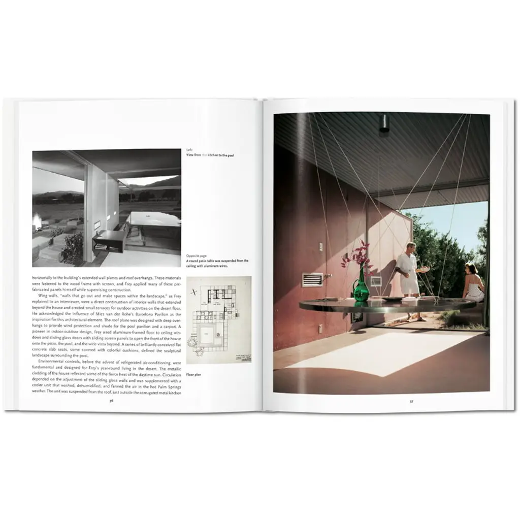 Albert Frey, published by Taschen, provides a compact insight into the career of the architect Albert Frey who become well-known for his unique “desert modernism.” Swiss-born Frey brought the legacy of Bauhaus, De Stijl and Le Corbusier to the West Coast of the United States, leaving his imprint on the architecture of the rough, arid landscapes of California and Palm Springs. Written by architectural historian and author Gloria Koenig, the book is part of Taschen's Basic Architecture series that presents the life and work of internationally renowned architects with approximately 120 photographs, sketches and drafts. The series has been edited by German art historian Peter Gössel. Meet desert modernist Albert Frey, the Zurich-born architect who brought notes of Bauhaus, De Stijl, and Le Corbusier to the West Coast. From his European beginnings, Frey developed a unique architectural brand, one that would redefine midcentury California through sleek, leisurely structures nestled among the arid landscapes of Palm Springs and beyond.