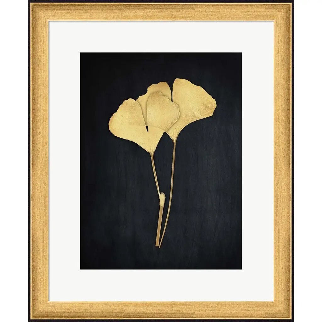 Midas Ginkgo 1 by Albert Koetsier is a high quality piece of framed artwork. The finished size of this piece is 19.25" X 23.25". It has a Gold Black Accent Contemporary frame, is single matted and finished with high quality Acrylic Plexiglass. 100% Satisfaction Guaranteed.
