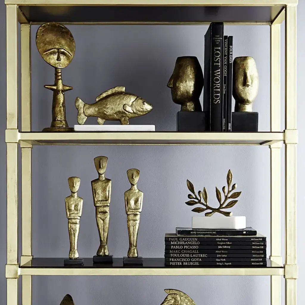If you’re looking for an artful finishing touch to accessorize a living room shelf or bedroom side table, look no further than the Alberto Statue. Intertwined with its distinctly modernist aesthetic, is the allure of an ancient art piece (think, the great heads of Easter Island scaled down to your desk or bookshelf), with a gilded gold leaf that gives it the air of a found treasure. Thankfully, it’s not nearly as delicate as an archaeological artifact, as it’s rendered in iron and sits atop a sturdy black marble base. This forever piece will complement all of your future homes and any design aesthetic.