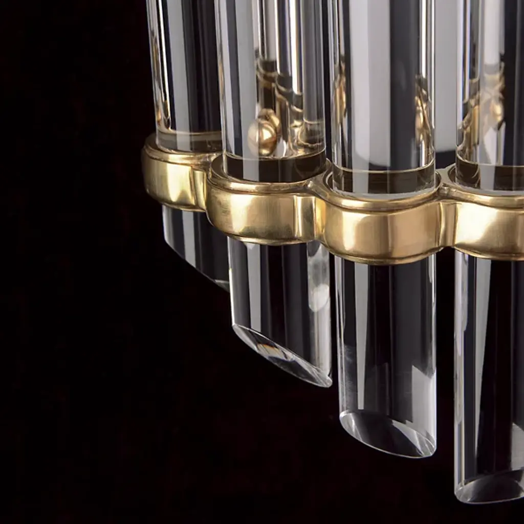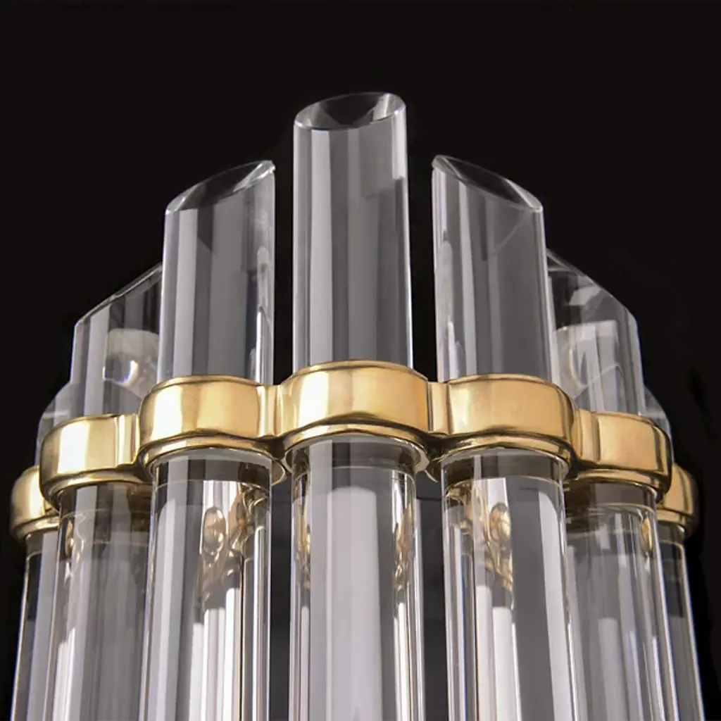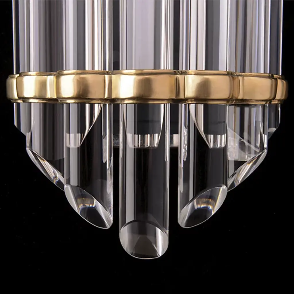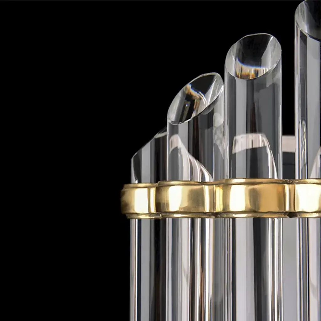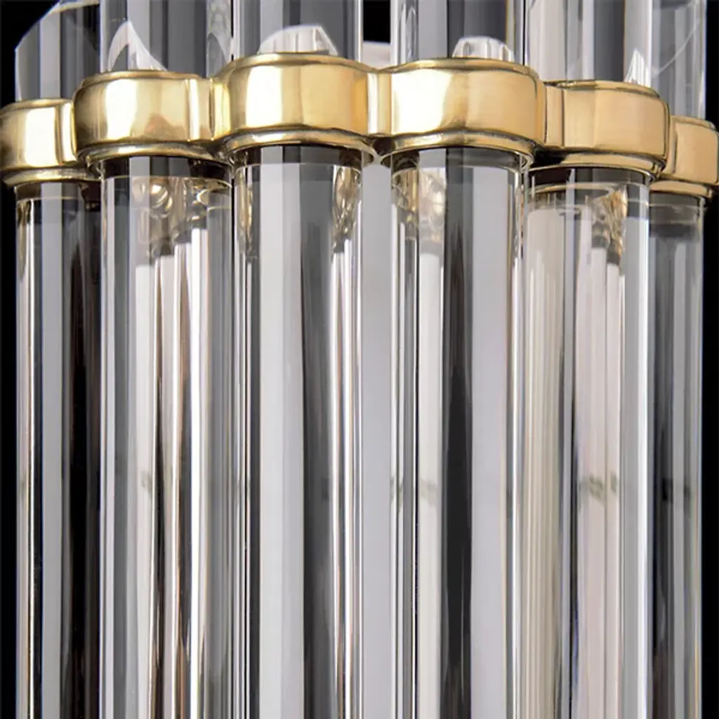 A fashionable fixture that features crystal rods with metallic accents, the Hudson Valley Lighting Albion Vanity Light shimmers with twentieth-century glamour. The tapered ends and rounded profile of the crystal gives the fixture a diamond shape that is accessorized by fluted metal rings. Illuminated by LED lamps behind a frosted glass diffuser, the light is brilliant and shines outward through the glass accents.