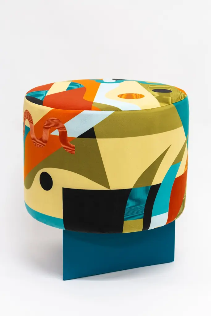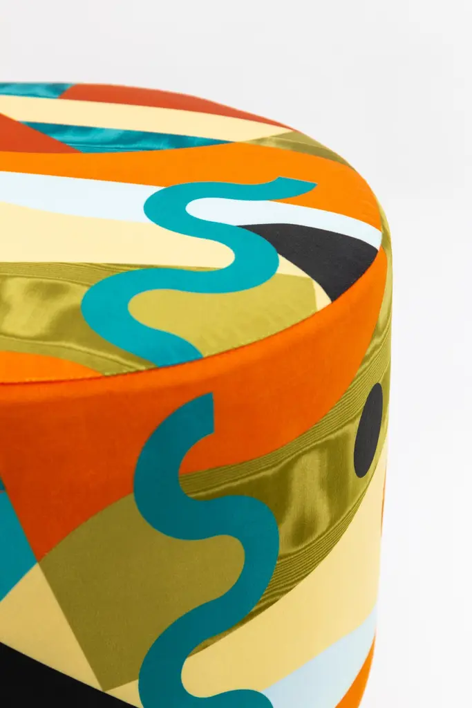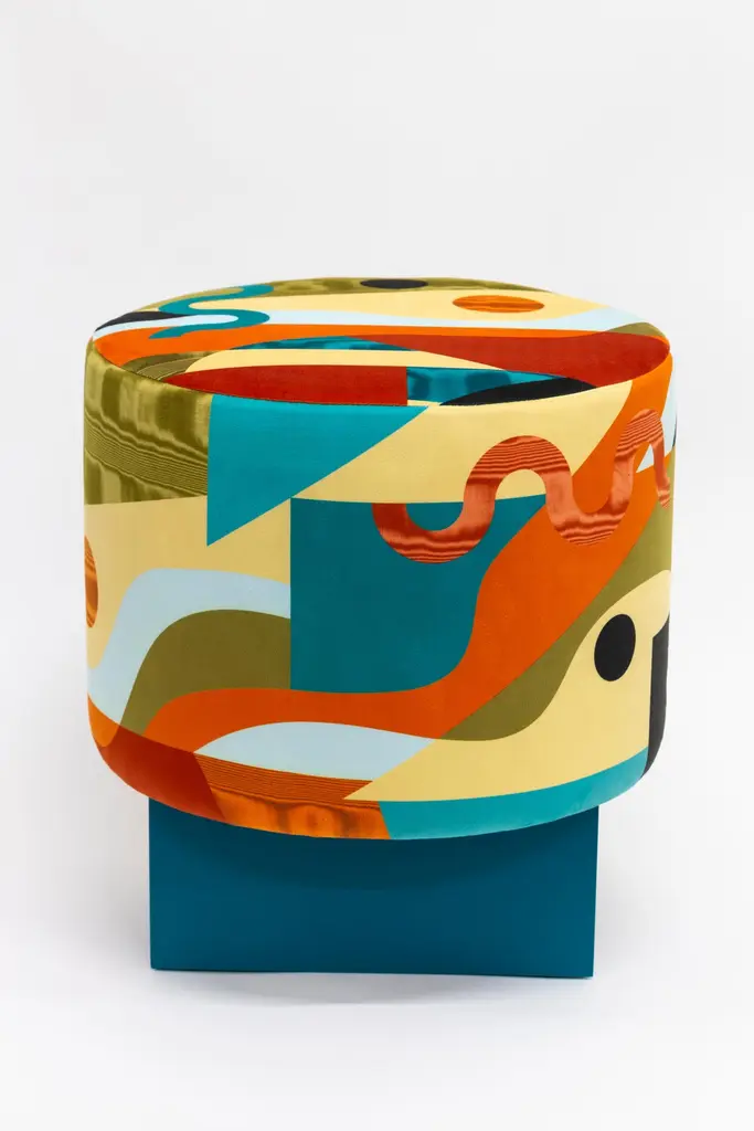 Alchimie Contemporary Printed Velvet And Mdf Pouf By Vito Nesta #2