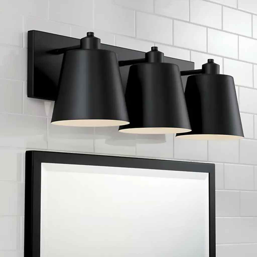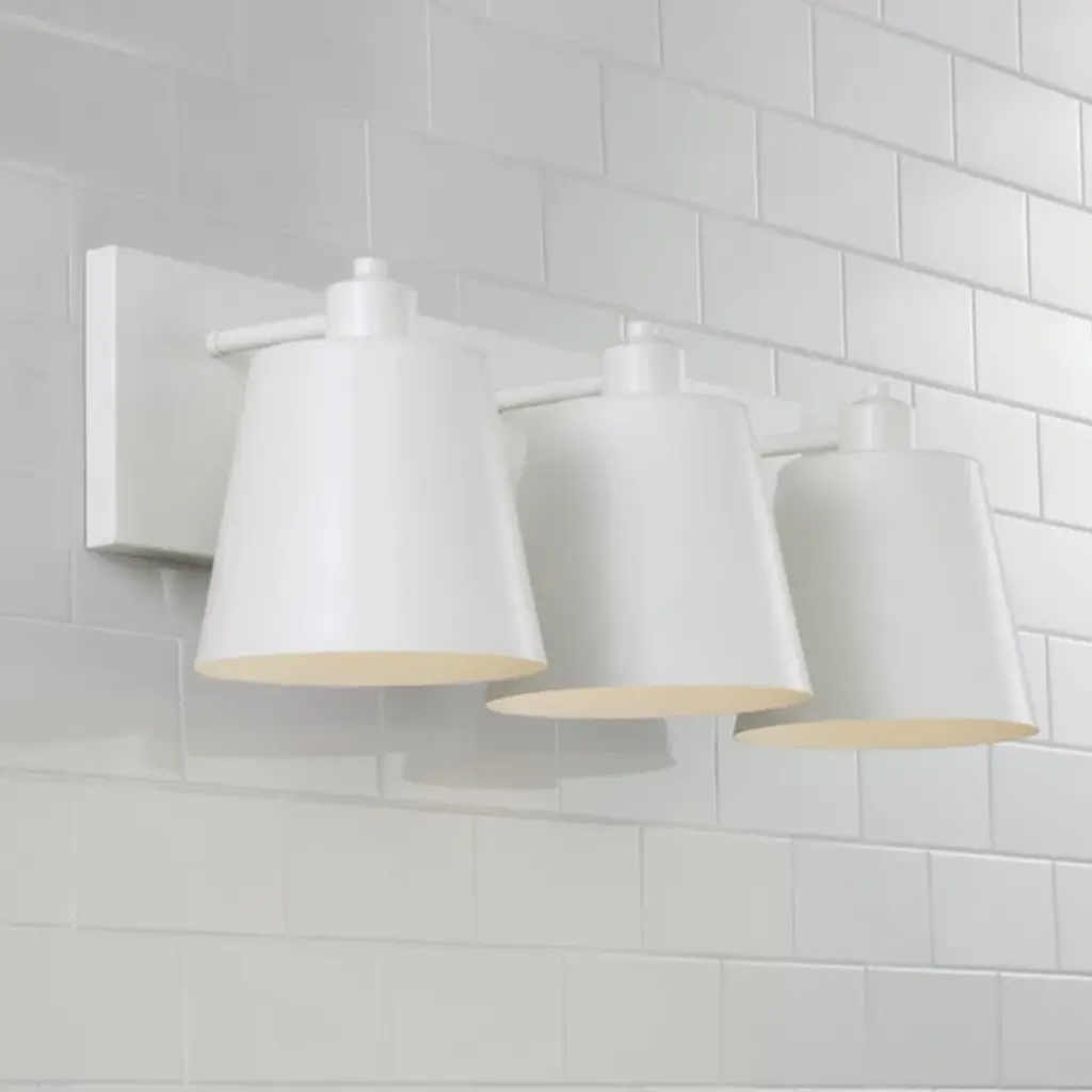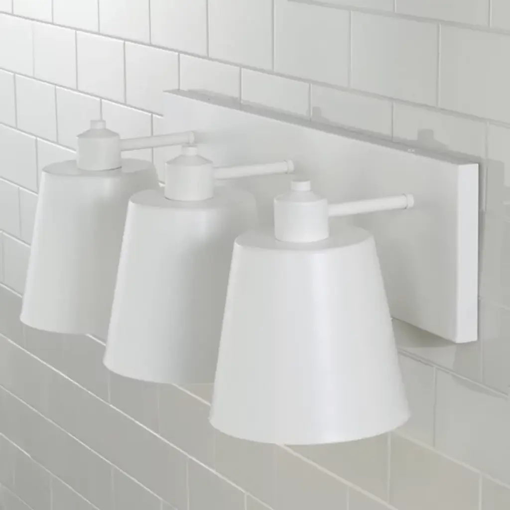The Alden Vanity Light from Capital Lighting boasts a contemporary design suited for form and function. Crafted from high-quality metal, this gorgeous fixture features tapered drum shades elegantly resting along a rectangular backplate, creating a streamlined and industrial aesthetic. Illuminate your living space with its vibrant LEDs that provide brilliant light. Alden’s brightness is dimmable when paired with a separately sold ELV dimmer. This vanity light makes your grooming routine a breeze.