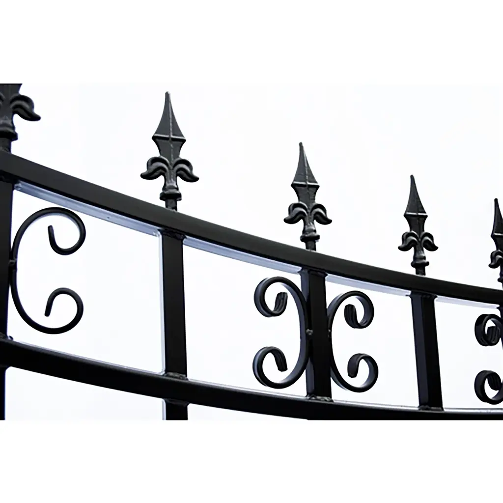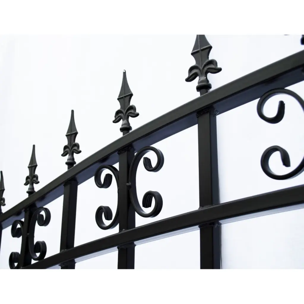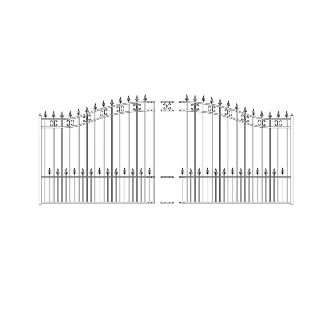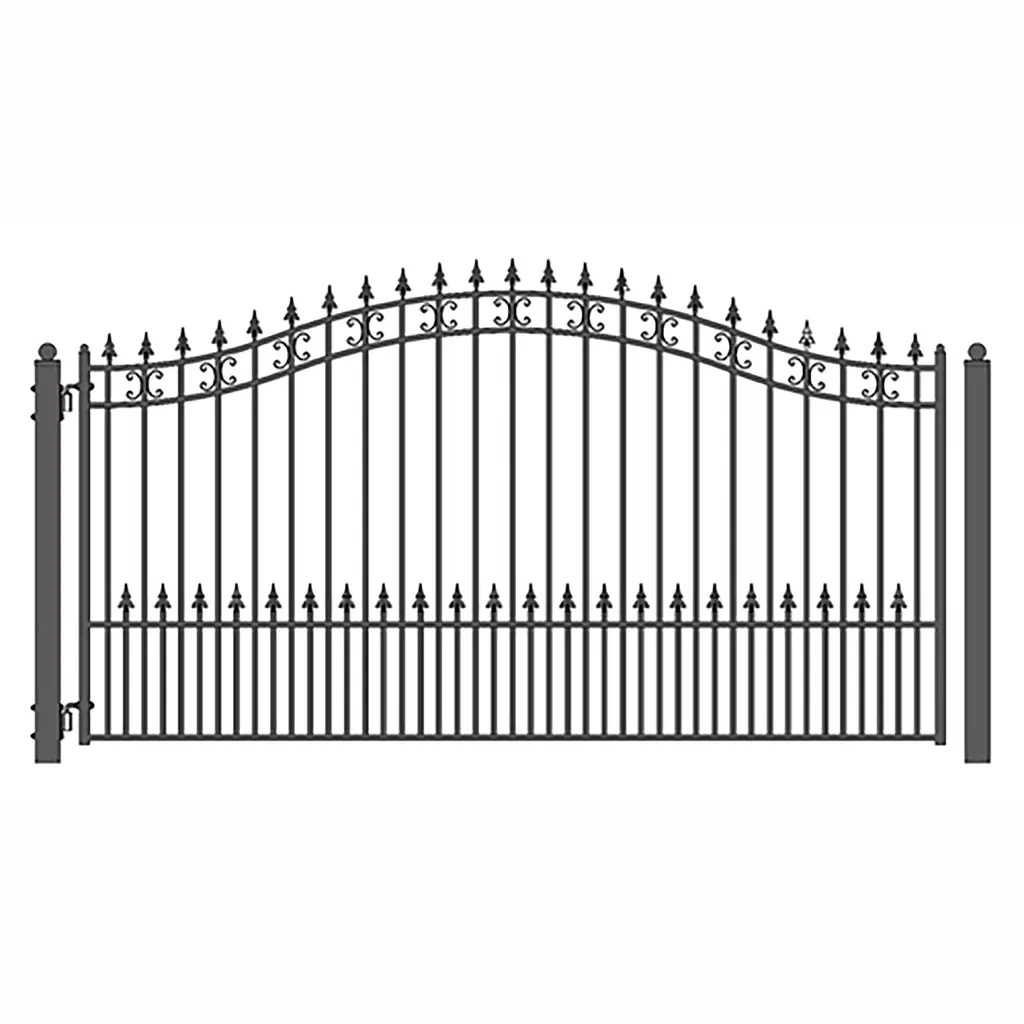 ALEKO High quality 18' x 6' Single Swing Driveway Gate, specially designed for the easiest installation. The Driveway Gate captures the classic magnificence of historic wrought iron gates at an affordable price. We use the Duplex System when to make our gate: Galvanized Steel and Powder Coated Paint. Galvanized Steel is a process that protects the steel from rust and corrosion. The powder coating actually increases the life of galvanized steel. Unlike conventional paints, powder coated paints will not peel, chip or crack. One of the most dramatic changes you can make to the exterior of your home is adding an electronic opening gate that increases home security and enhances the aesthetics of your property. Make this driveway gate into an automatic gate by installing a gate opener that increases home security and enhances the aesthetics of your property.Specification: ALEKO High quality Single Swing Gate Maintenance free, no painting or staining Duplex System (powder paint is applied to galvanized steel) Durable and strong all welded construction Great combination of strength, corrosion resistance No Welding Required Material: Galvanized steel gate with a powder paint coating Gate Dimensions L X H: 18 ft. x 6 ft. Pedestrian gate - 5 ft tall x 4 ft long Pedestrian Post Dimensions: 7.6' L x 2.4" W x 2.4" H Gate Post Dimensions: 8' L x 3.5" W x 3.5" H Replacement warranty 10 years Color: BlackIncluded: Two Gate Panels, Two Posts, Regular Hinges J-bolt