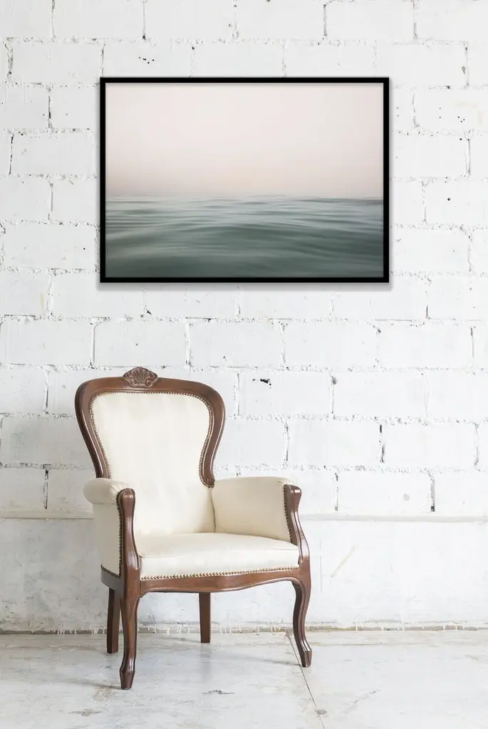 Seen first at One Kings Lane: This hazy, atmospheric work from Alex Hoerner captures a vast seascape in a moody palette. Printed on high-quality photo paper and displayed in a wood frame, this piece arrives ready to hang.