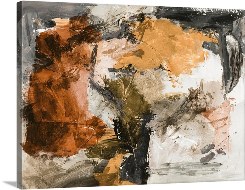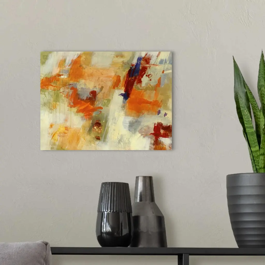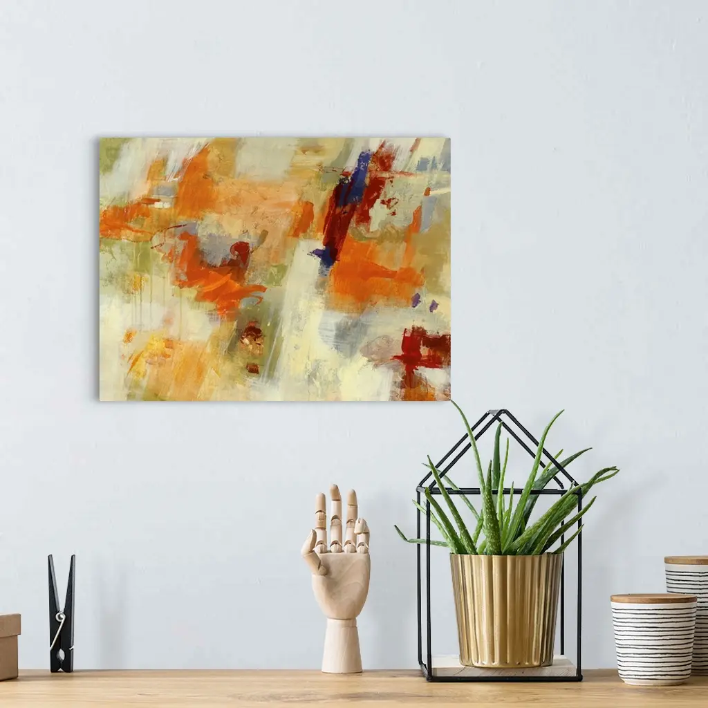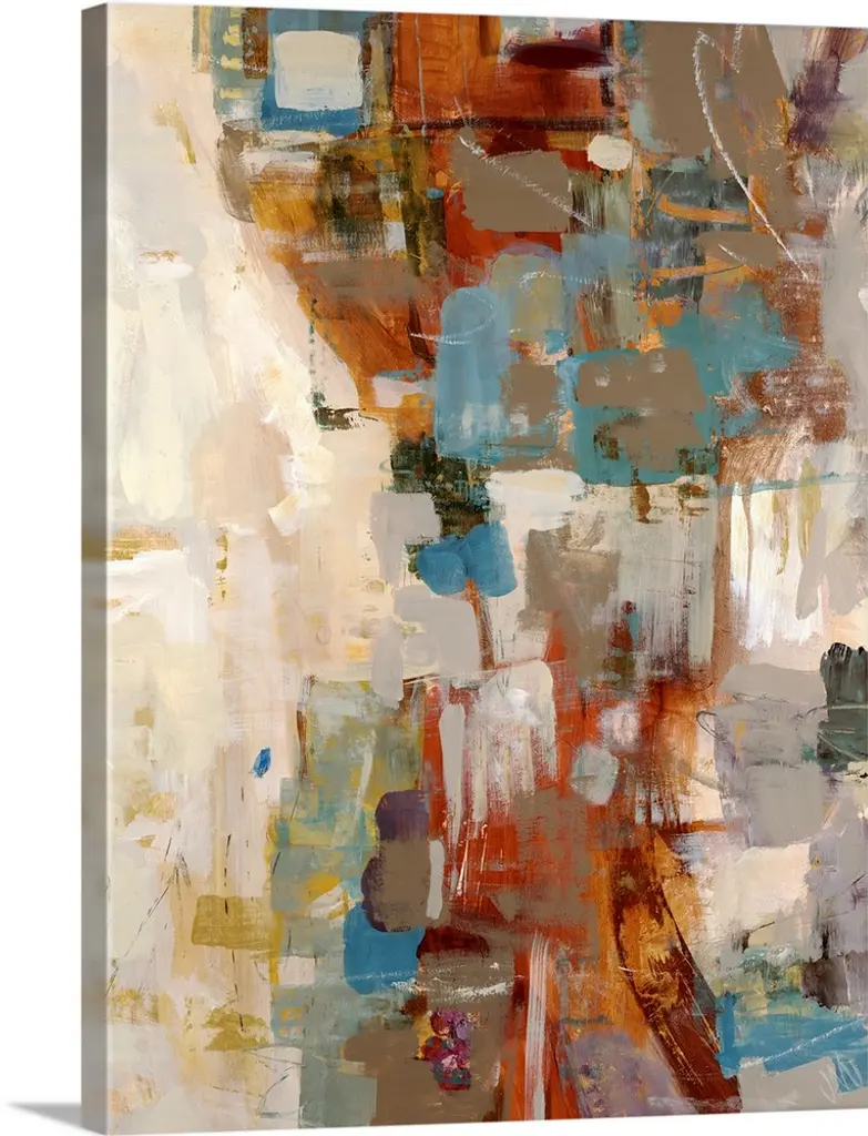 Colorful contemporary abstract painting consisting of wide brush strokes and dripping painting.