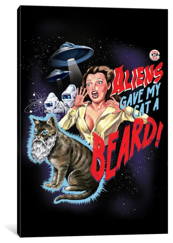 "Aliens Gave My Cat A Beard" By Steven Rhodes Canvas Print, 26"x18"