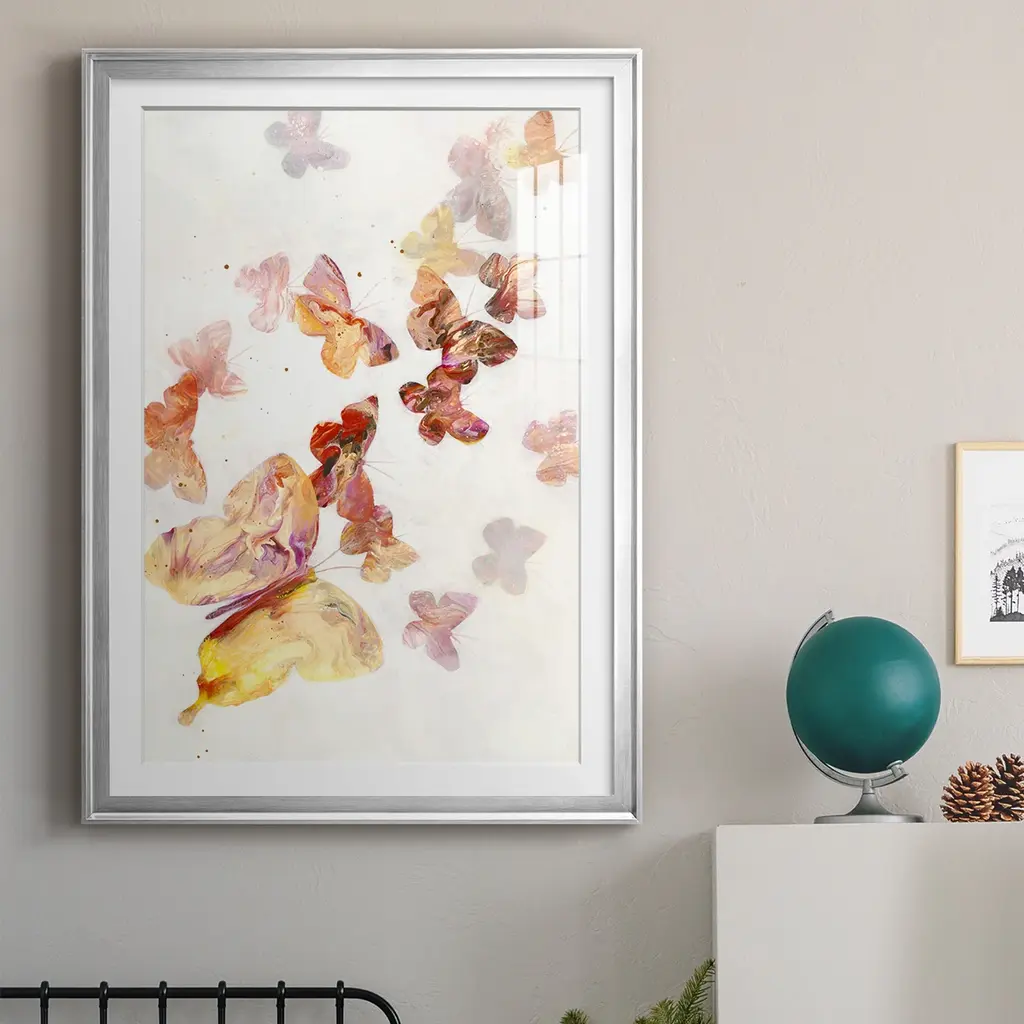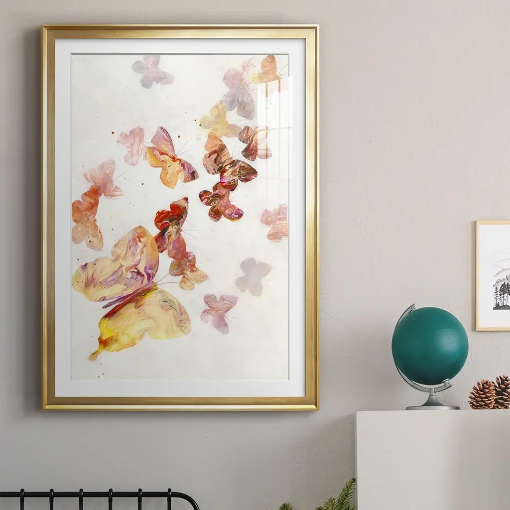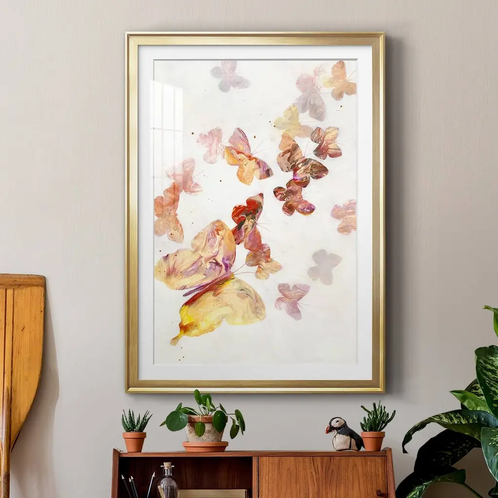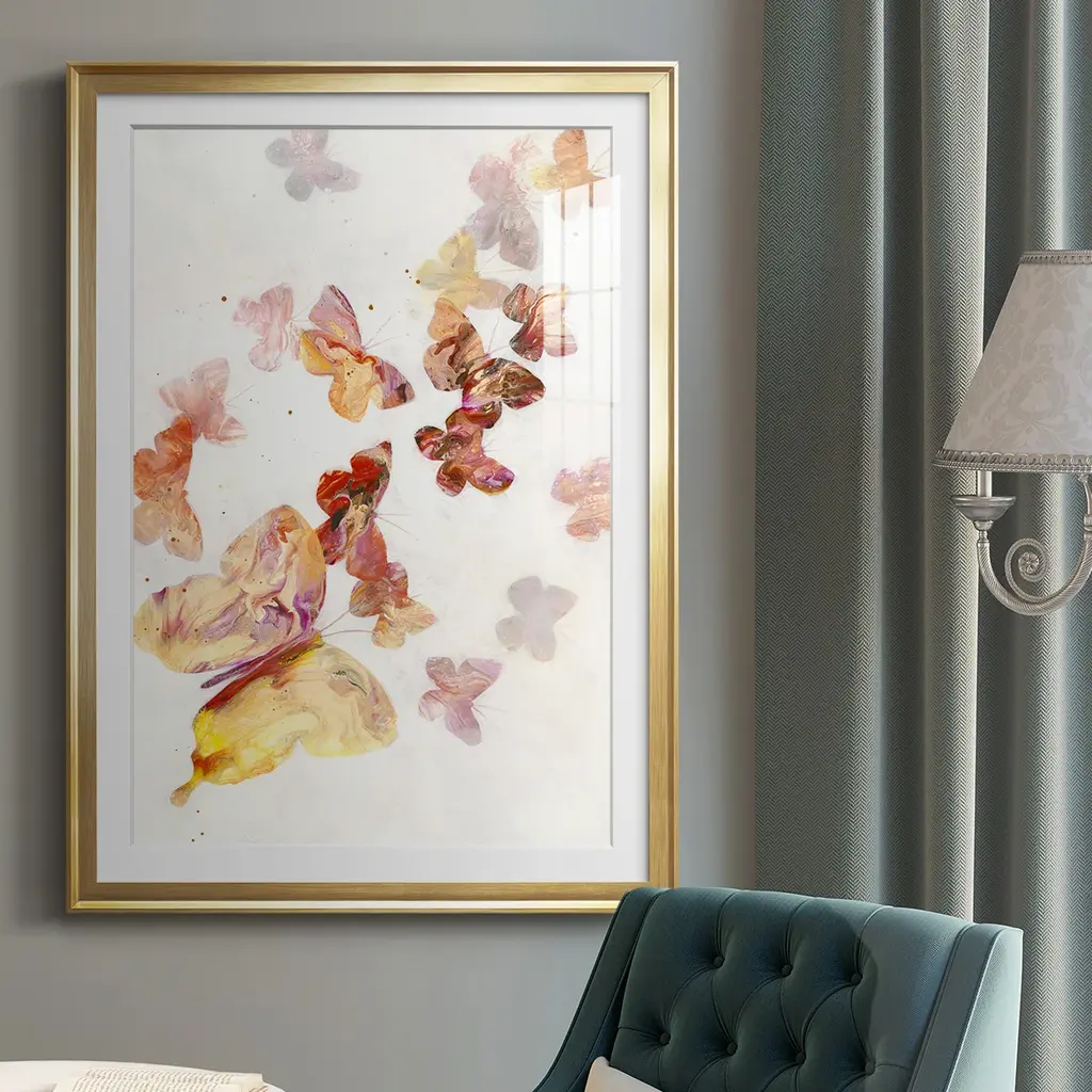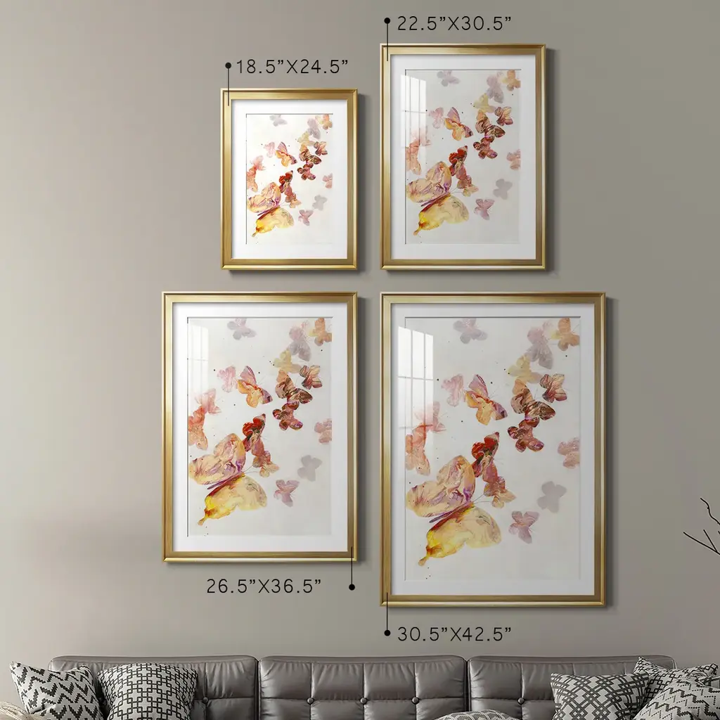 All A Flutter Premium Framed Print - Ready to Hang A Premium Framed Print created to last. Framed in distressed wood and available in an array of sizes and colors Featuring a beveled a solid wood stretcher bar, each piece comes ready to hand 4 SIZES AVAILABLE 30.5''X42.5'' - Overall Size 26.5'X36.5'' - Overall Size 22.5''x30.5'' - Overall Size 18.5''x24.5'' - Overall Size Each piece is made to order. Each piece comes with hanging hardware. Made in the USA Ready to Hang Giclee Paper Print Acrylic Glass Beveled Matt Board