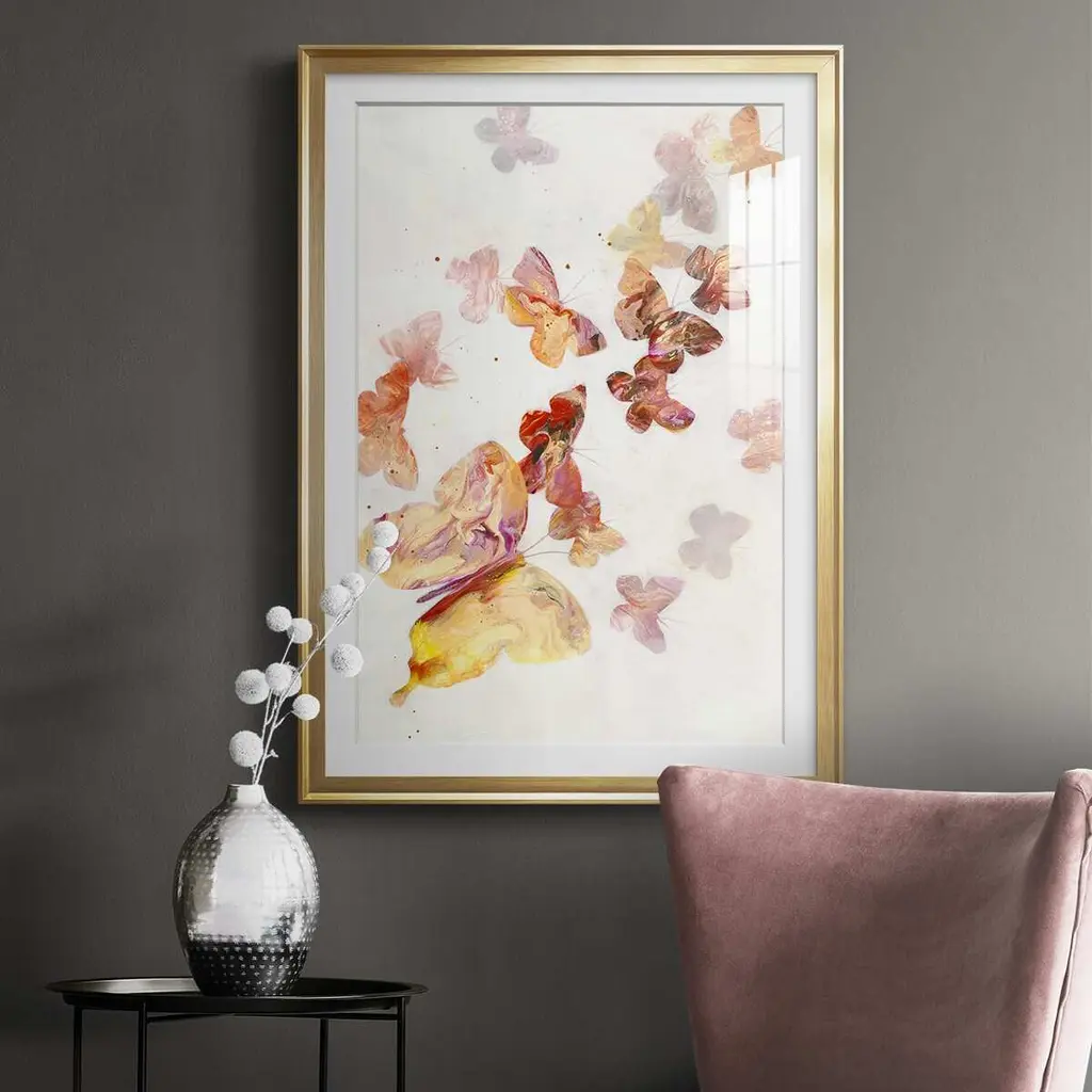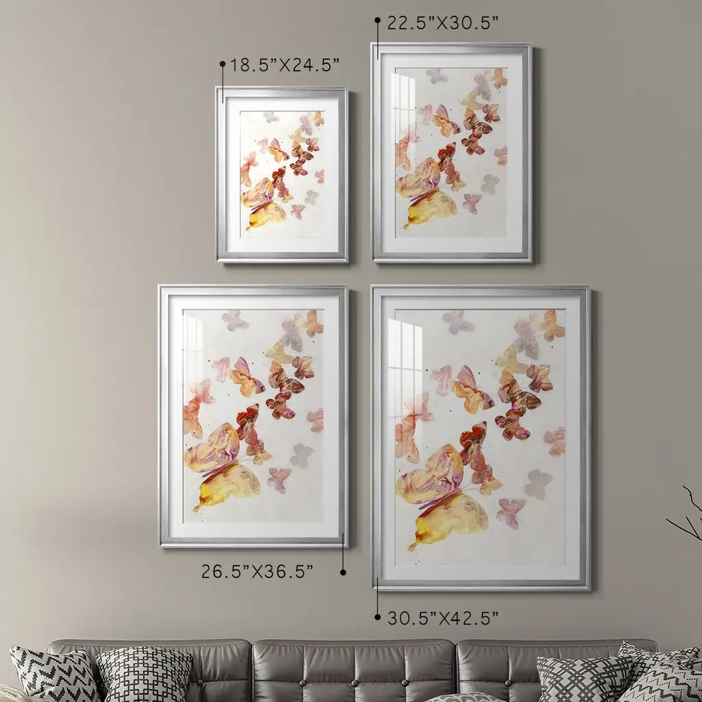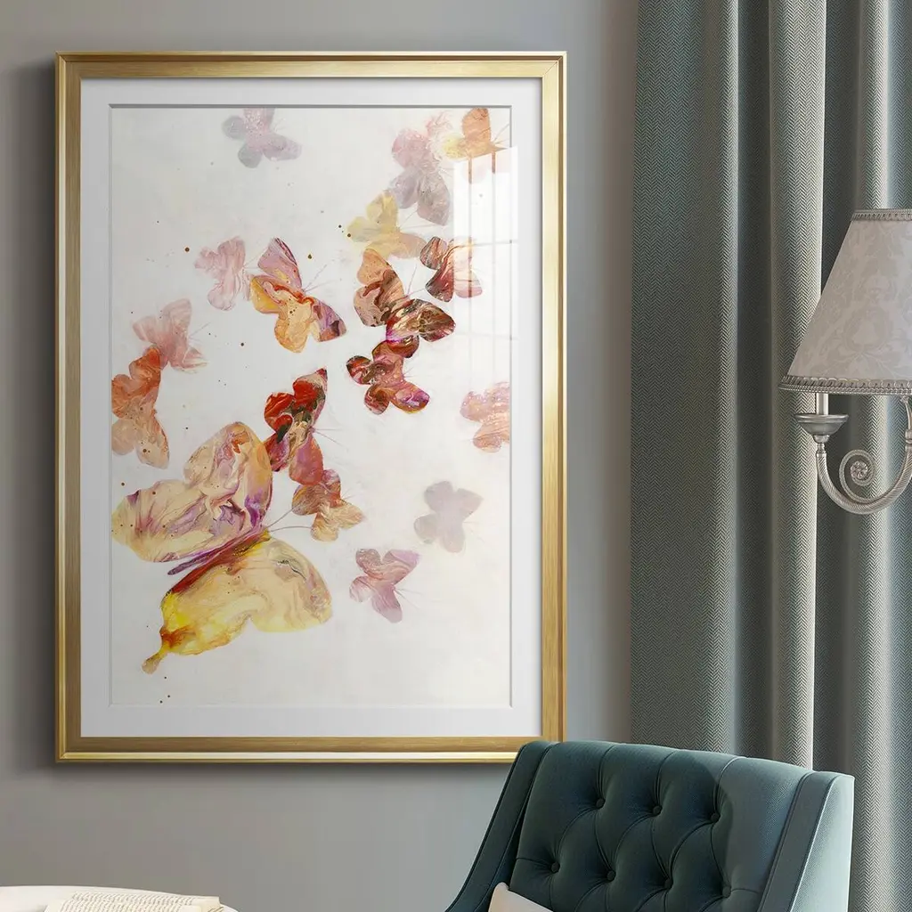 All A Flutter Premium Framed Print - Ready to Hang A Premium Framed Print created to last. Framed in distressed wood and available in an array of sizes and colors Featuring a beveled a solid wood stretcher bar, each piece comes ready to hand 4 SIZES AVAILABLE 30.5''X42.5'' - Overall Size 26.5'X36.5'' - Overall Size 22.5''x30.5'' - Overall Size 18.5''x24.5'' - Overall Size Each piece is made to order. Each piece comes with hanging hardware. Made in the USA Ready to Hang Giclee Paper Print Acrylic Glass Beveled Matt Board