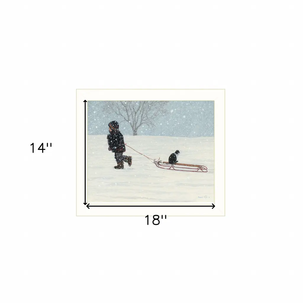 This all aboard white framed print wall art will add a beautiful decorative accent to your decor. This print is a visual artistic expression that allows you to decorate your space in style. Reproduced for you on paper, this hanging decorative accent will be a trendy and fashionable way to dress your walls. Adding this hanging wall art to your space to make your room feel more finished and attractive. Instantly liven up your space with this art that brings color and dimension to your walls. 14" H x 18" W x 1" D