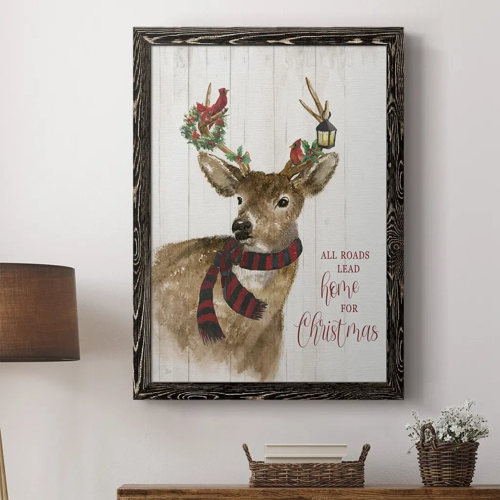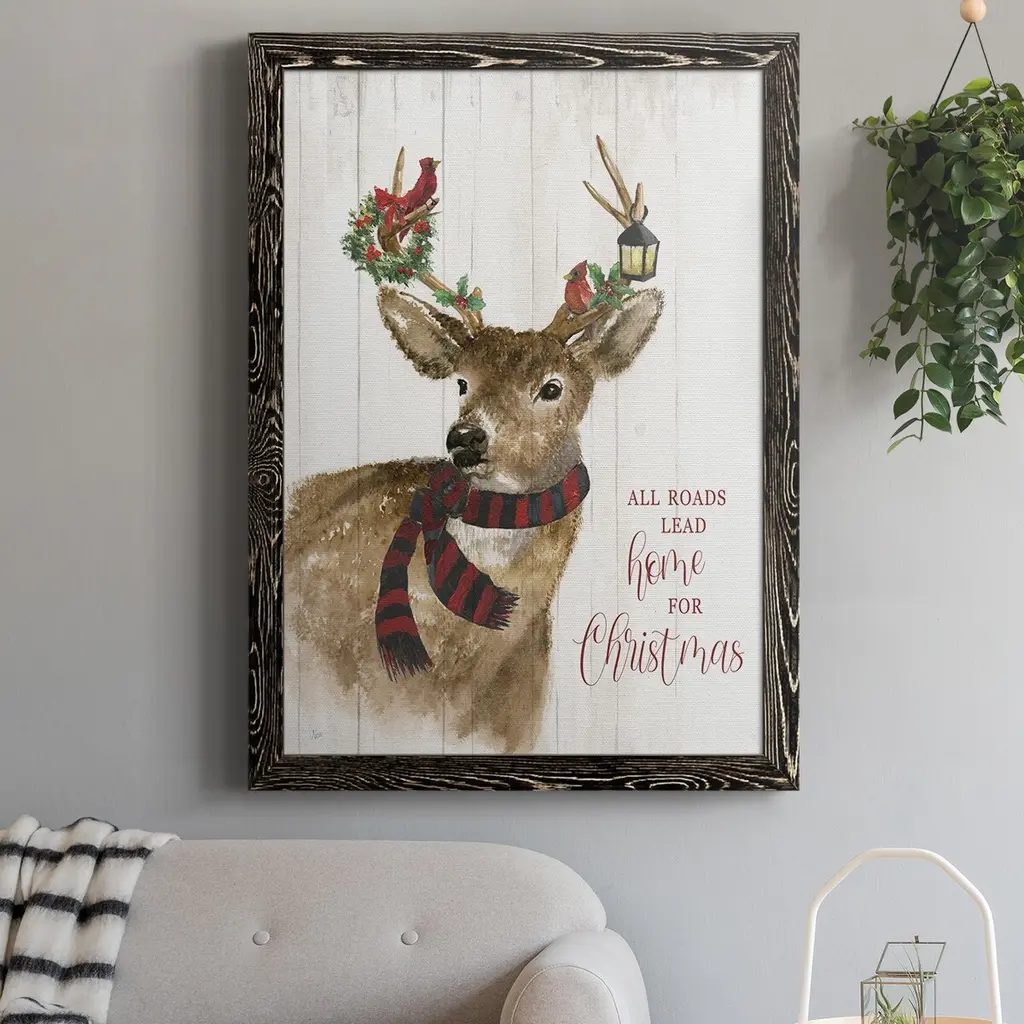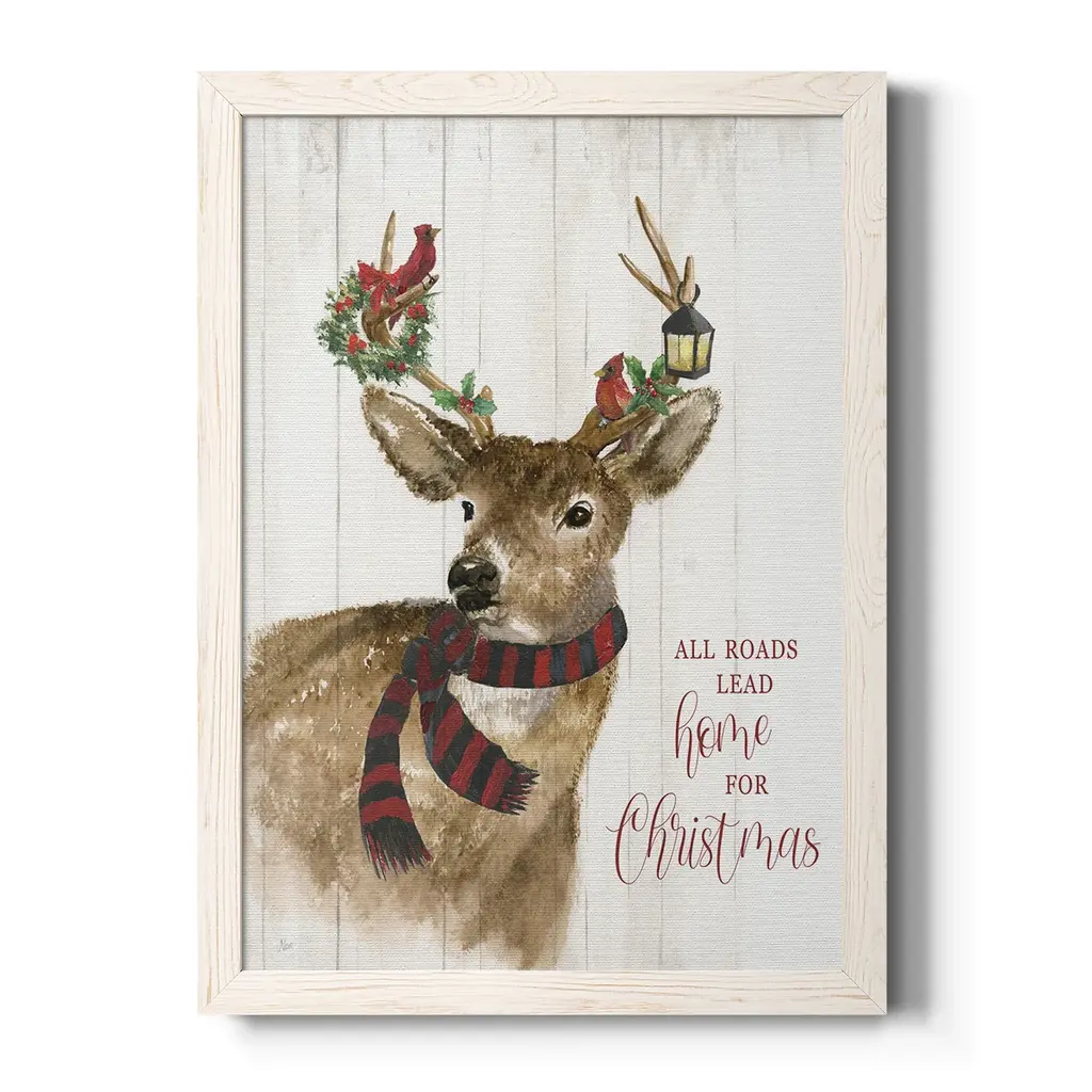 All Roads Lead Home Deer-Premium Framed Canvas - Ready To Hang - 27.5x37.5 - Walnut