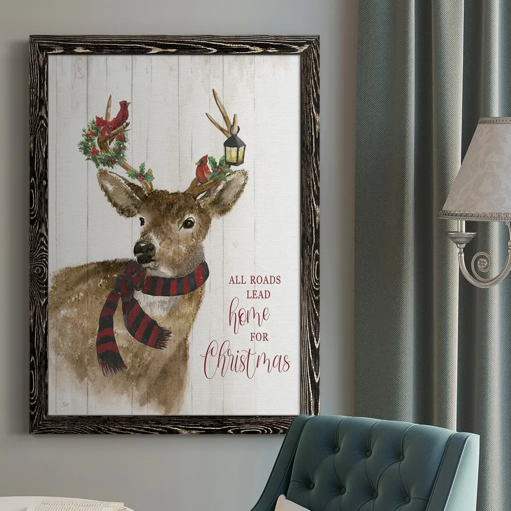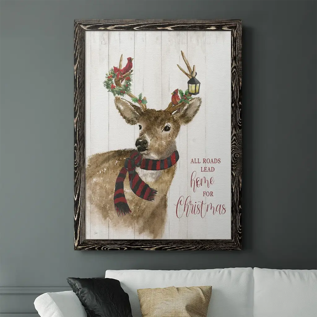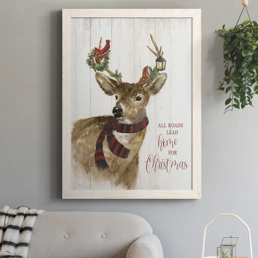 All Roads Lead Home Deer-Premium Framed Canvas - Ready To Hang - 31.5x43.5 - Maple