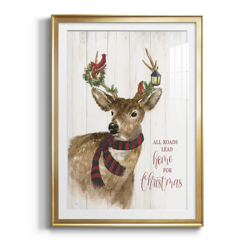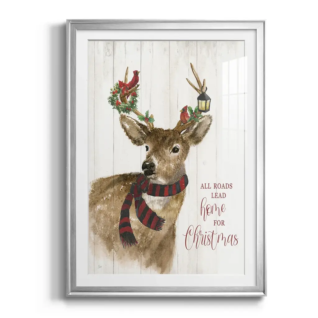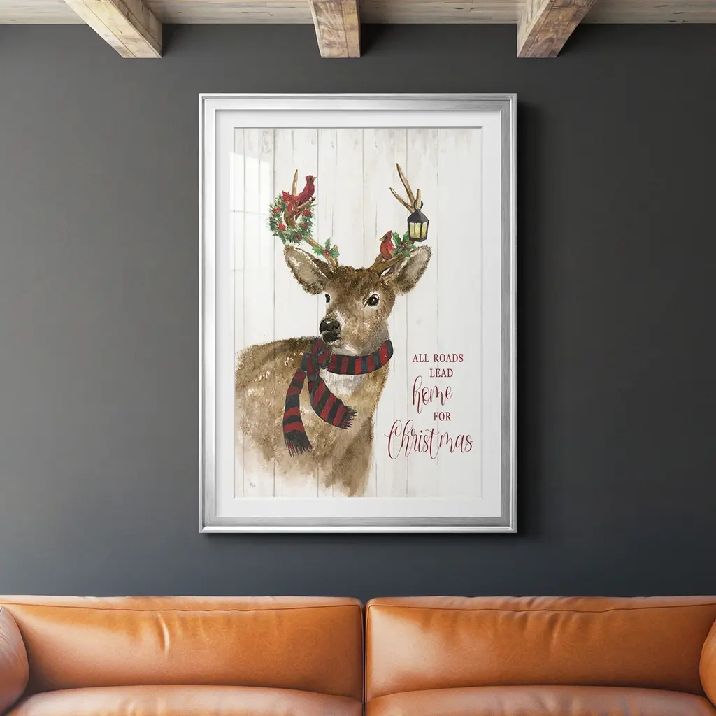 All Roads Lead Home Deer Premium Framed Print - Ready to Hang A Premium Framed Print created to last. Framed in distressed wood and available in an array of sizes and colors Featuring a beveled a solid wood stretcher bar, each piece comes ready to hand 4 SIZES AVAILABLE 30.5''X42.5'' - Overall Size 26.5'X36.5'' - Overall Size 22.5''x30.5'' - Overall Size 18.5''x24.5'' - Overall Size Each piece is made to order. Each piece comes with hanging hardware. Made in the USA Ready to Hang Giclee Paper Print Acrylic Glass Beveled Matt Board