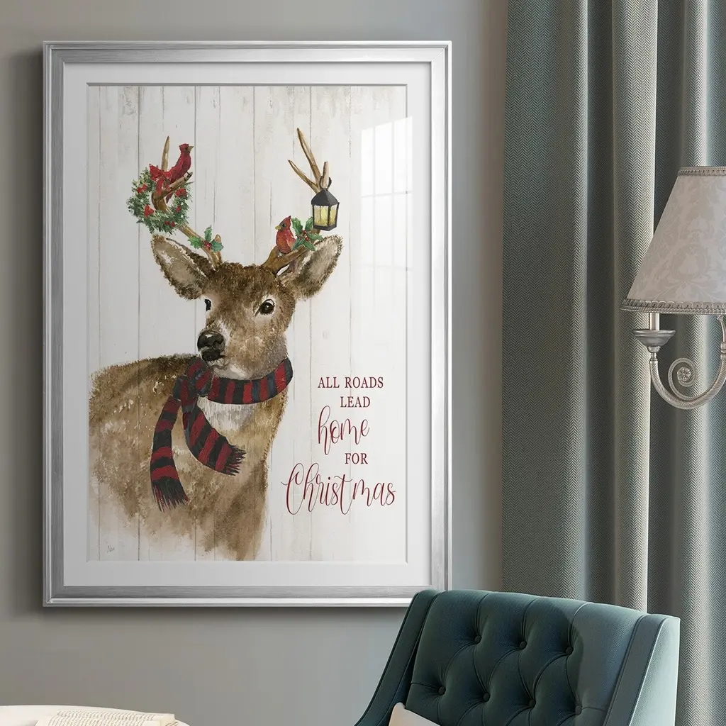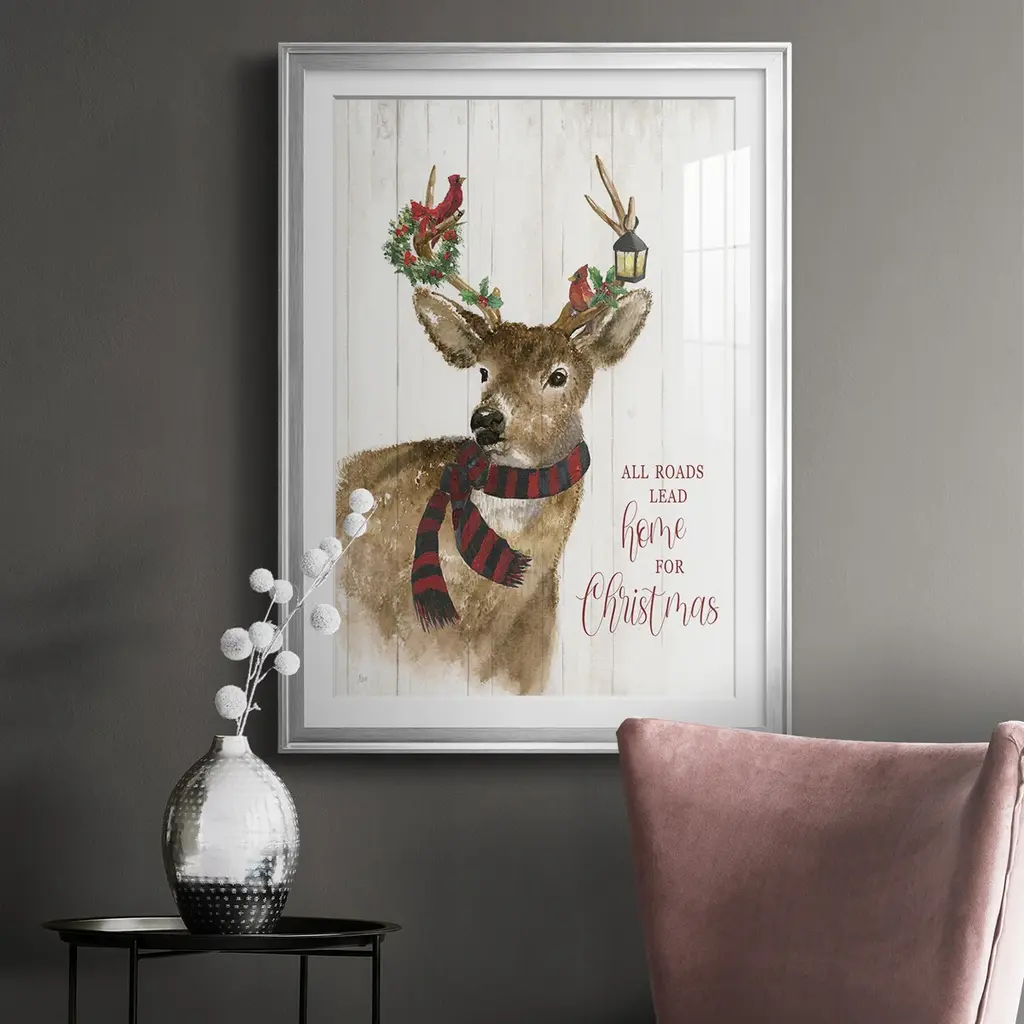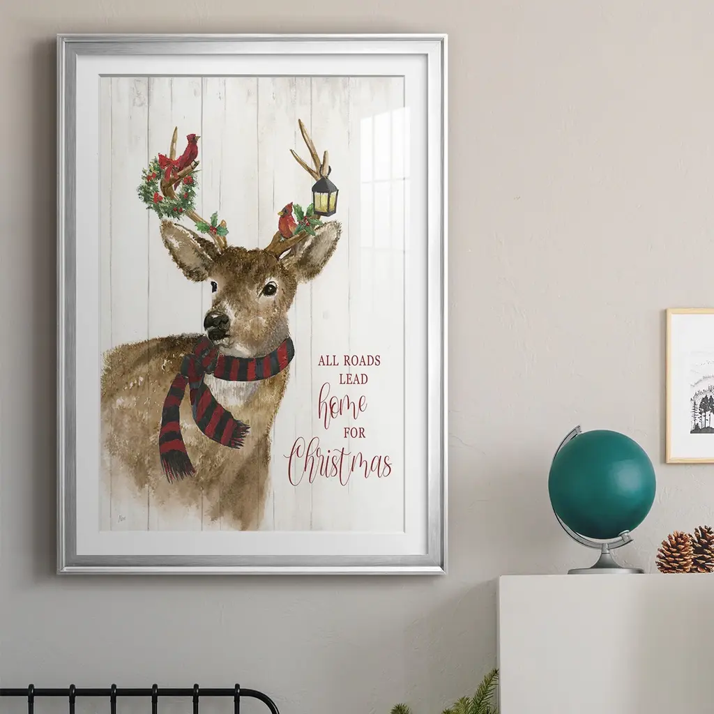 All Roads Lead Home Deer Premium Framed Print - Ready to Hang A Premium Framed Print created to last. Framed in distressed wood and available in an array of sizes and colors Featuring a beveled a solid wood stretcher bar, each piece comes ready to hand 4 SIZES AVAILABLE 30.5''X42.5'' - Overall Size 26.5'X36.5'' - Overall Size 22.5''x30.5'' - Overall Size 18.5''x24.5'' - Overall Size Each piece is made to order. Each piece comes with hanging hardware. Made in the USA Ready to Hang Giclee Paper Print Acrylic Glass Beveled Matt Board
