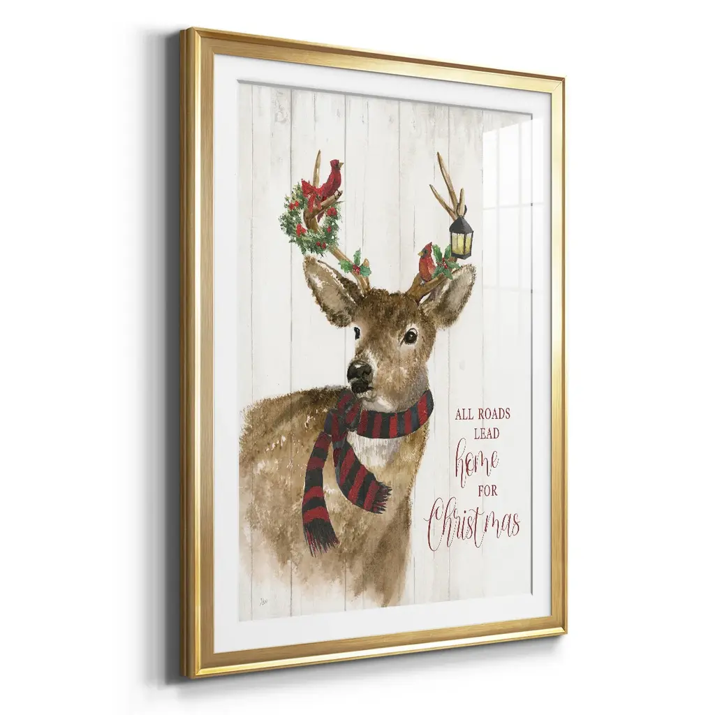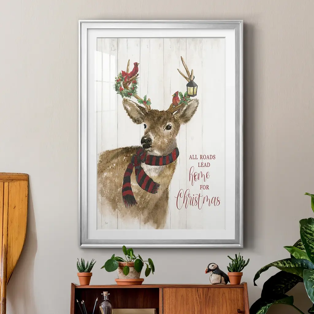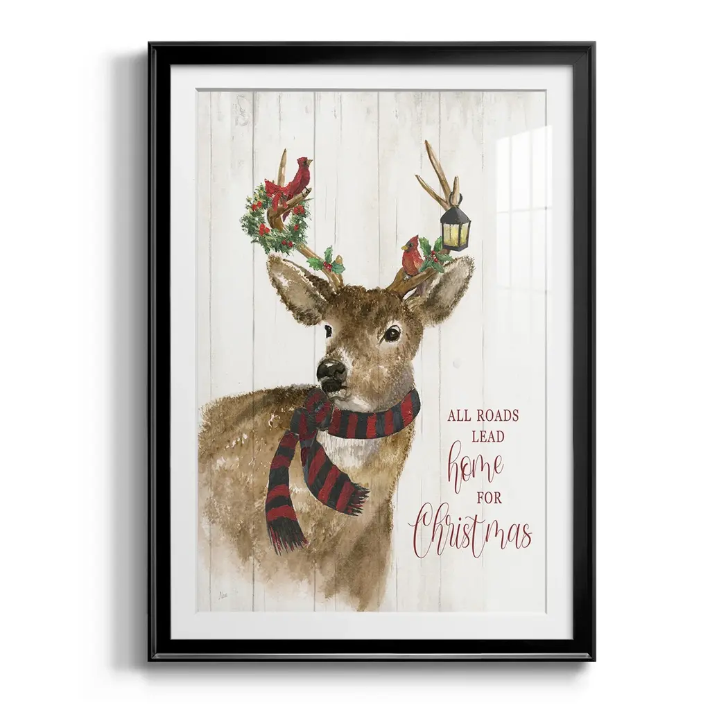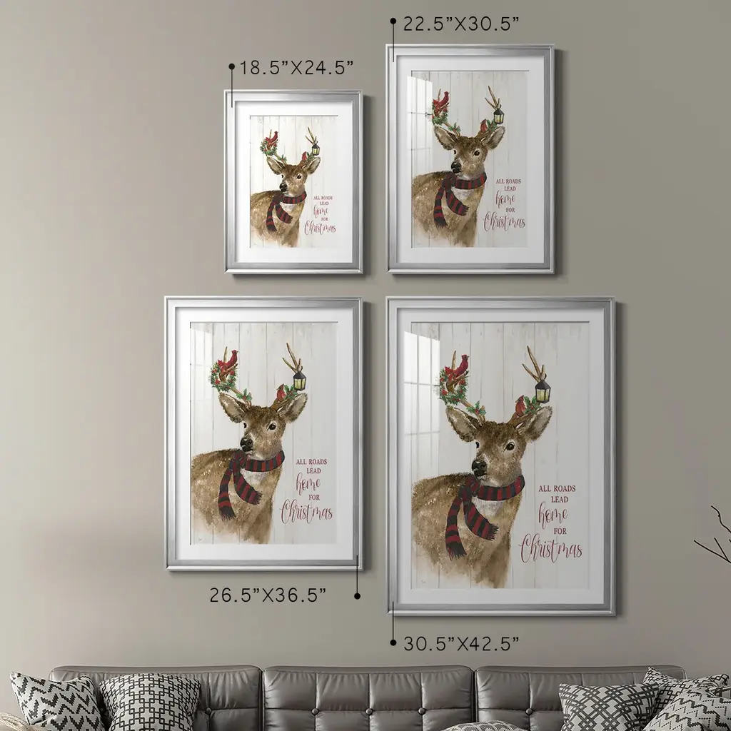 All Roads Lead Home Deer Premium Framed Print - Ready to Hang A Premium Framed Print created to last. Framed in distressed wood and available in an array of sizes and colors Featuring a beveled a solid wood stretcher bar, each piece comes ready to hand 4 SIZES AVAILABLE 30.5''X42.5'' - Overall Size 26.5'X36.5'' - Overall Size 22.5''x30.5'' - Overall Size 18.5''x24.5'' - Overall Size Each piece is made to order. Each piece comes with hanging hardware. Made in the USA Ready to Hang Giclee Paper Print Acrylic Glass Beveled Matt Board