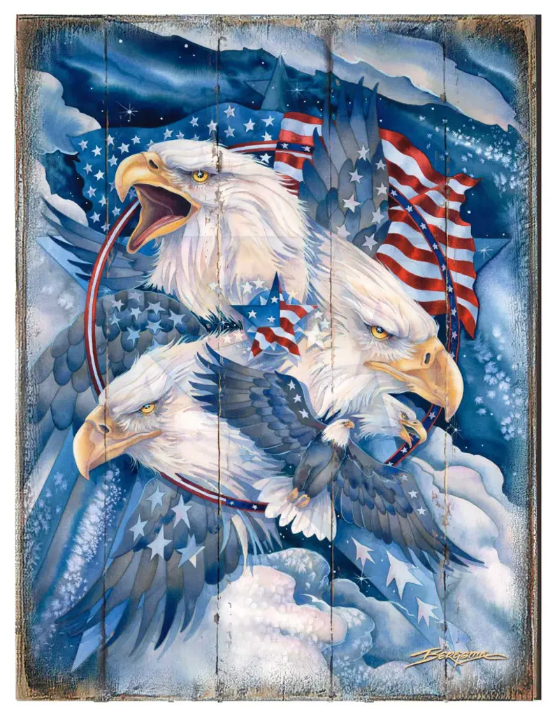 Allegiance American Patriotic Eagles Wooden Wall Art, Oversized 48x36