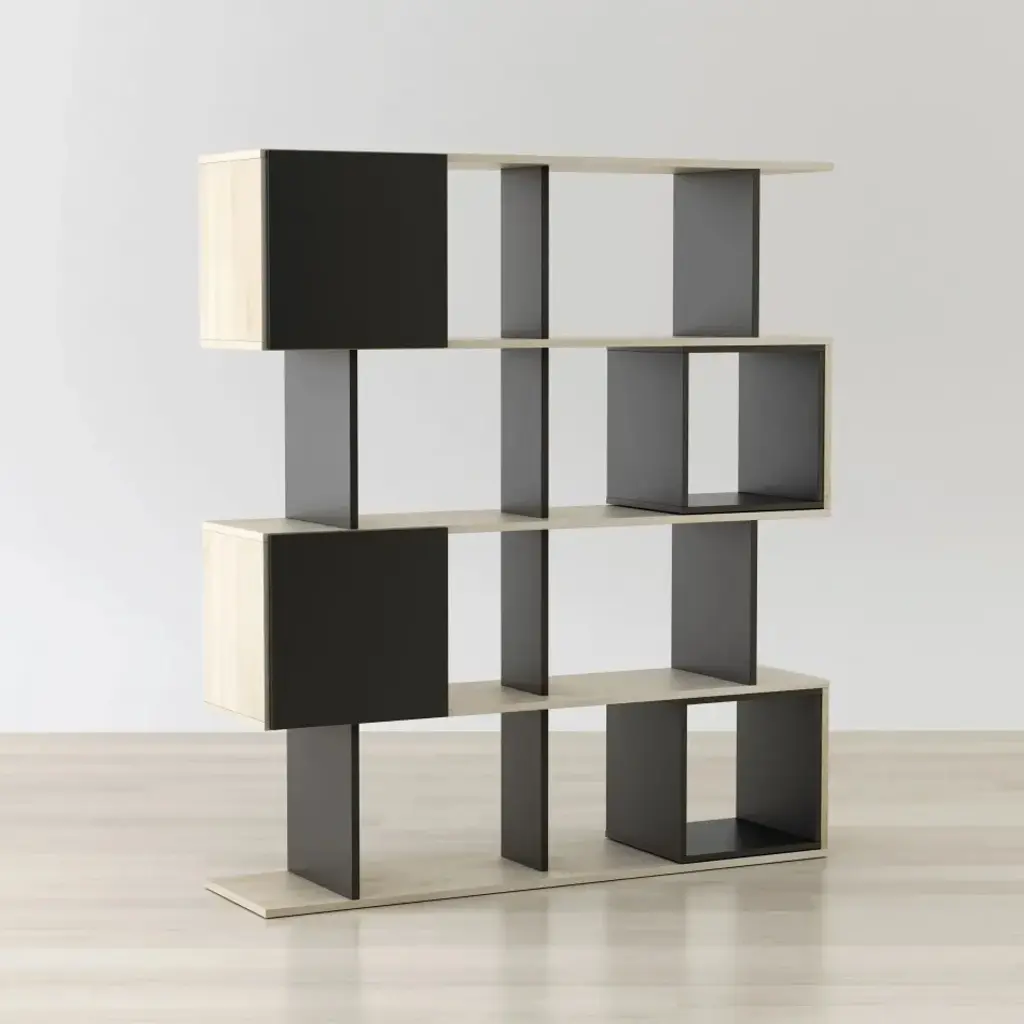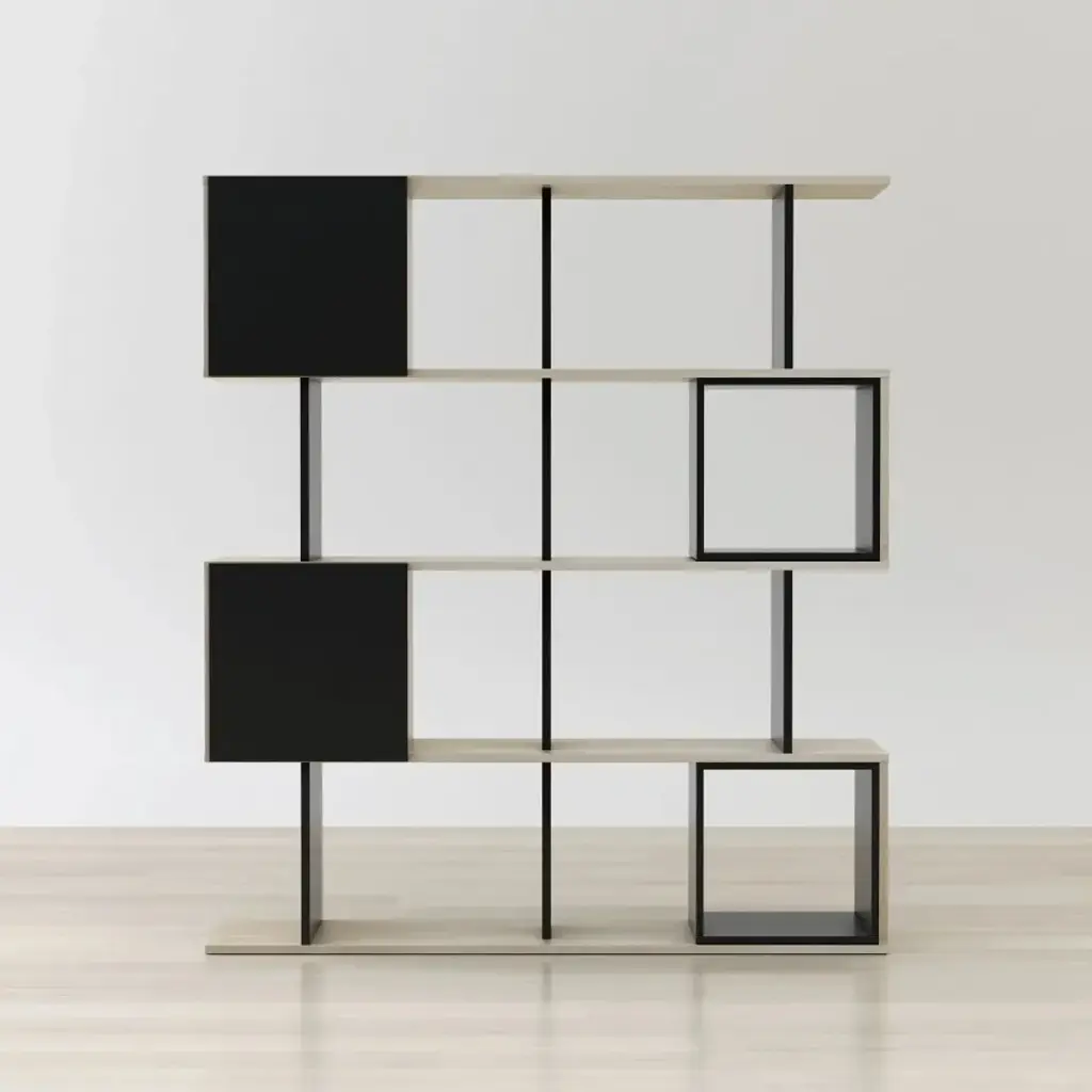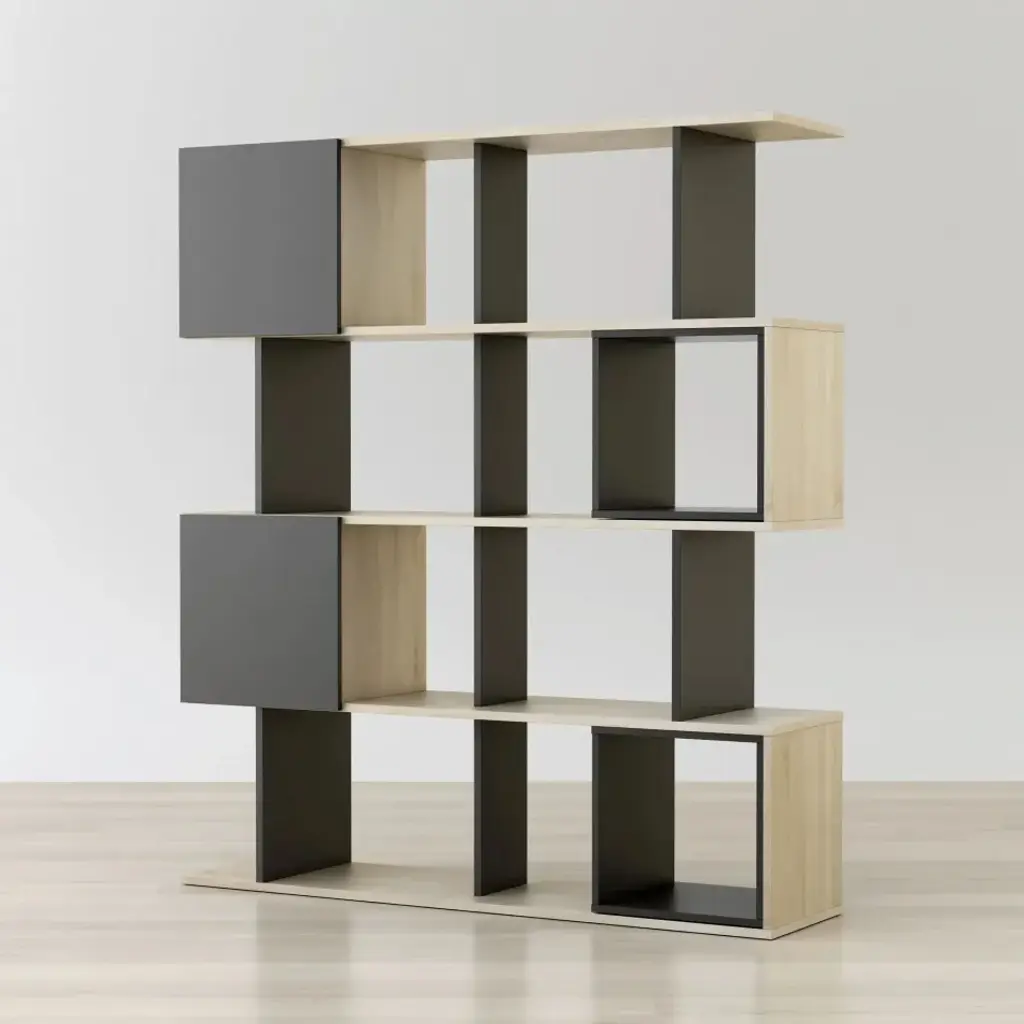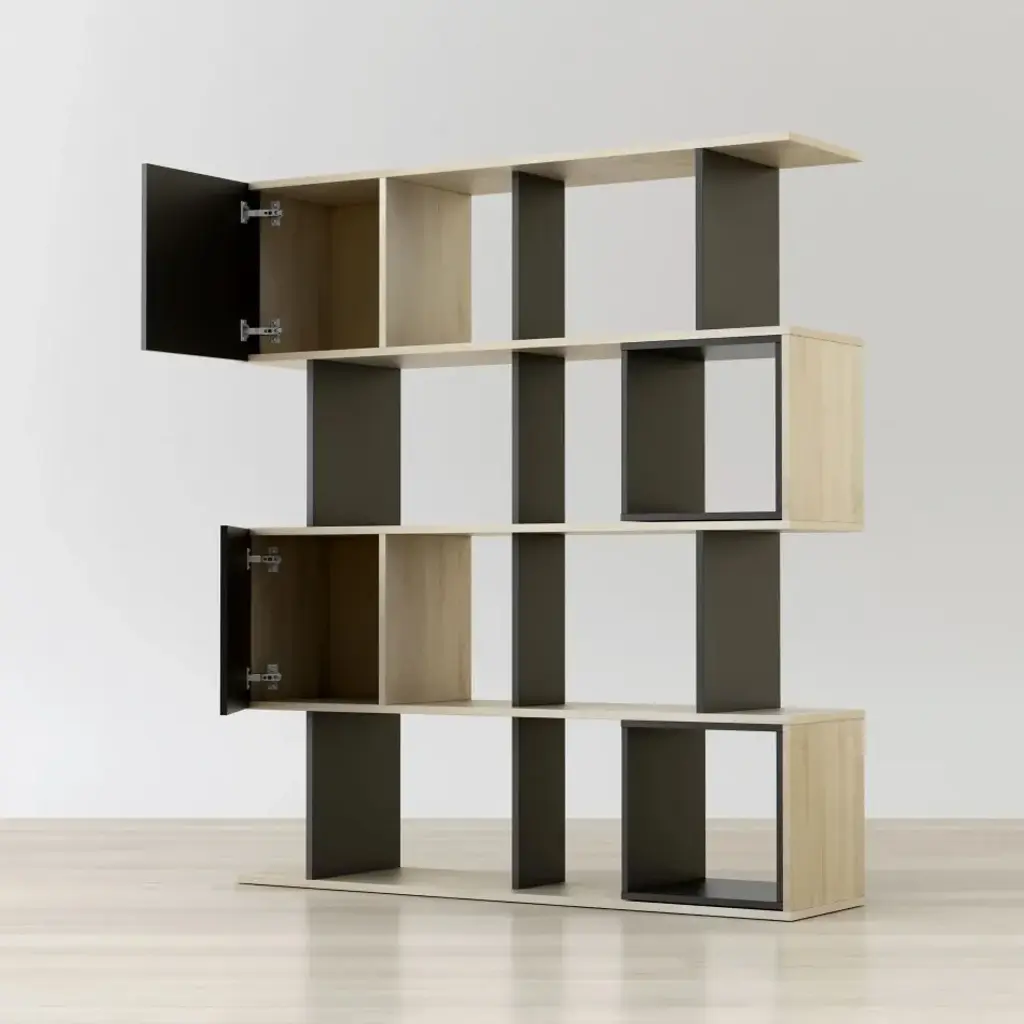 Showcase your expansive collection of your favorite books, items, pictures, artwork, and more with this 63″ Wide by 55″ high Alliance Geometric Bookcase. Perfect to place in any room whether it’s the living room, study and library room, or office space, this modern contemporary bookcase is sure to enliven any setting or decor. Featuring two box panel doors with metal swing for additional storage space, accentuate any room with your favorite books and artwork with this modern bookcase.