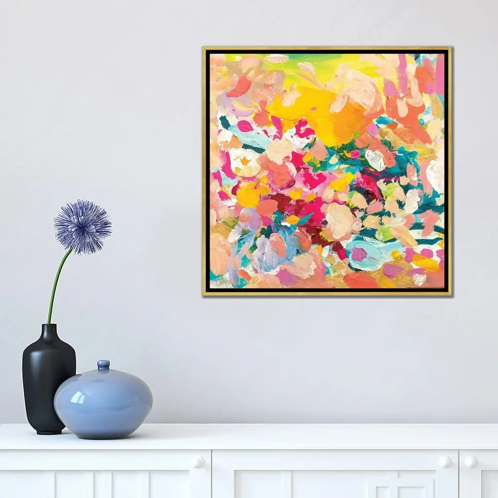 This print features a reproduction of Color Etude (or Spring Bouquet) (1966) by Alma Woodsey Thomas, an artist with work in MoMA's collection. It’s mounted and laminated for protection from dust and UV rays, and floated in a hand-stained, natural, 2"-deep frame made from ash wood grown in sustainable forests. Hanging kit included. The Alma Woodsey Thomas Color Etude Framed Print measures 38h x 19w x 2”d.