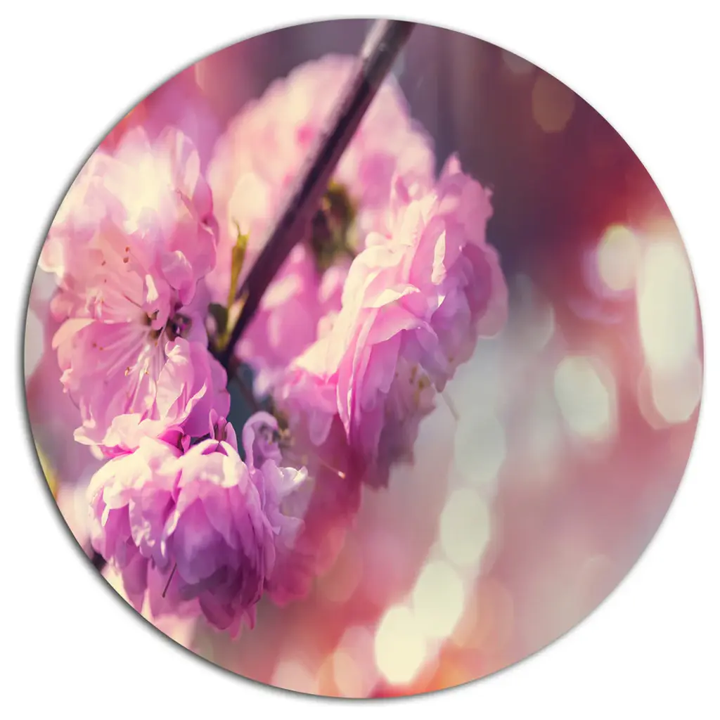 Almond Tree Pink Flowers, Flower Round Metal Wall Art, 11"
