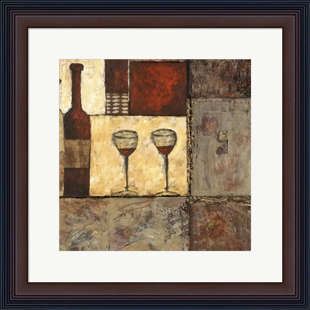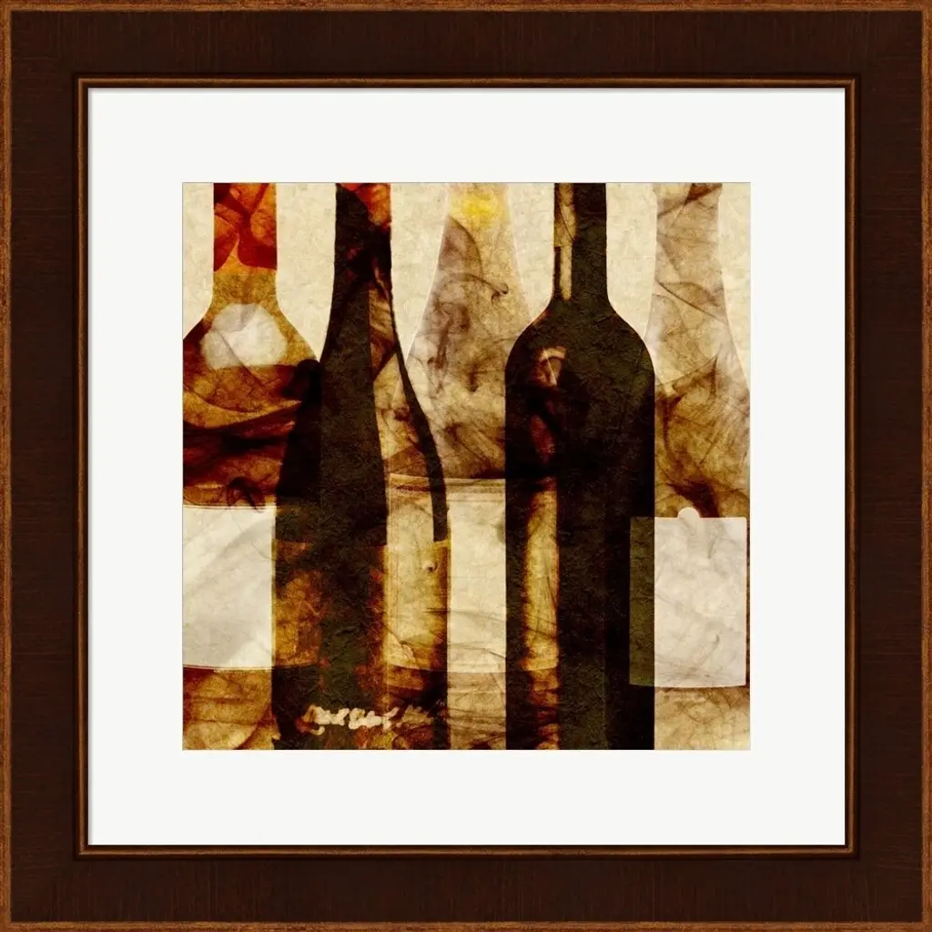 Smokey Wine IV by Alonzo Saunders is a high quality piece of framed artwork. The finished size of this piece is 22.5" X 22.5". It has a Walnut Dark Brown with Antique Bronze Edges frame, is single matted and finished with high quality Acrylic Plexiglass.