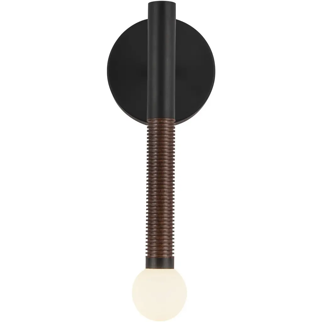 Add distinctive character to your space with the Arden lighting collection. Featuring ribbed details for added texture, Arden offers versatility with a decorative half shade or exposed opal glass globe for a minimalist mood. The black finish, accented by walnut wood veneer, brings a rustic or industrial charm to the design.