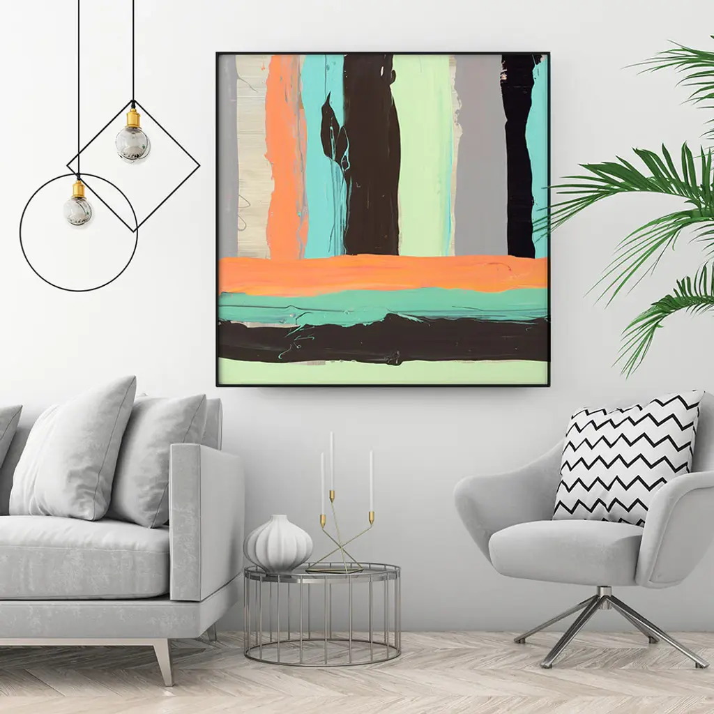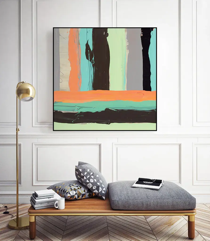 Your ready to hang artwork is printed on canvas then stretched and mounted to a 2-inch thick - hand stained black wood frame. Arrives at your door complete with an easy to use self-leveling hangking kit.