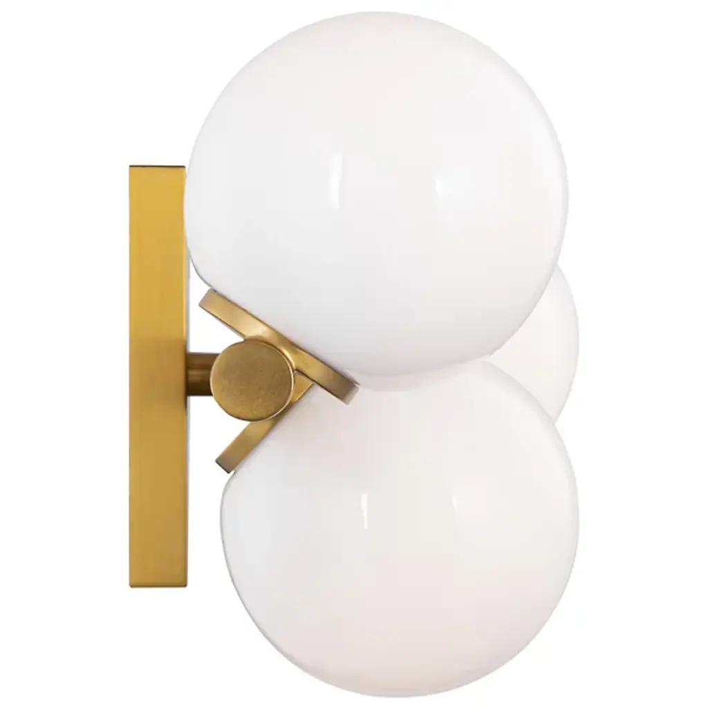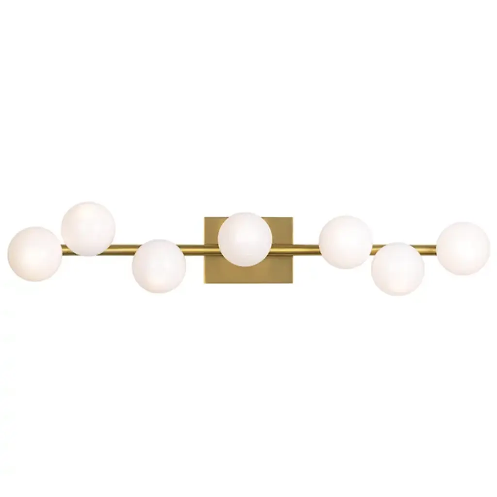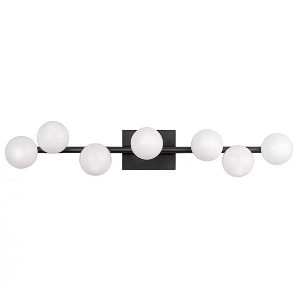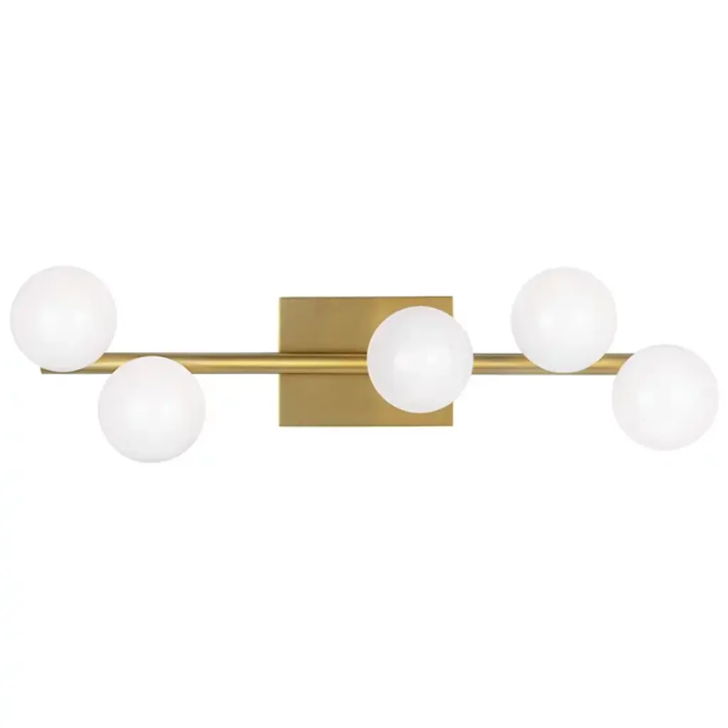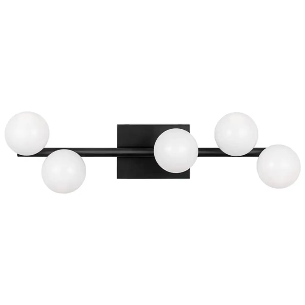 The Altair Vanity Light from Visual Comfort Studio uses spherical glass forms inspired by water droplets to create an engaging lighting profile. Sean Lavin designed this modern sconce with a minimalist metal framework that supports multiple glass globes for multidirectional illumination. These rounded elements diffuse light beautifully in bathrooms, bedrooms, and entry areas where the dimmable feature allows for customized brightness. The complete inclusion of mounting hardware means installation proceeds without additional purchases. The sconce's refined presence works well in pairs flanking mirrors or just as effectively as a standalone fixture in transitional spaces.