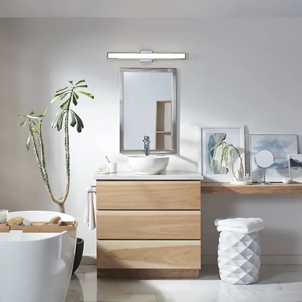 Simple silhouette and energy efficiency. The Alto LED Vanity Light from Hinkley Lighting displays a fashionable design with a straightforward silhouette. This enables it to work well with a lot of different decors. It’s made out of steel for durability, letting this product light up your bathroom for many years. It has a White Acrylic diffuser that covers the LED light source so that your room gets filled with quality light that doesn’t have any dark spots or glares in it.