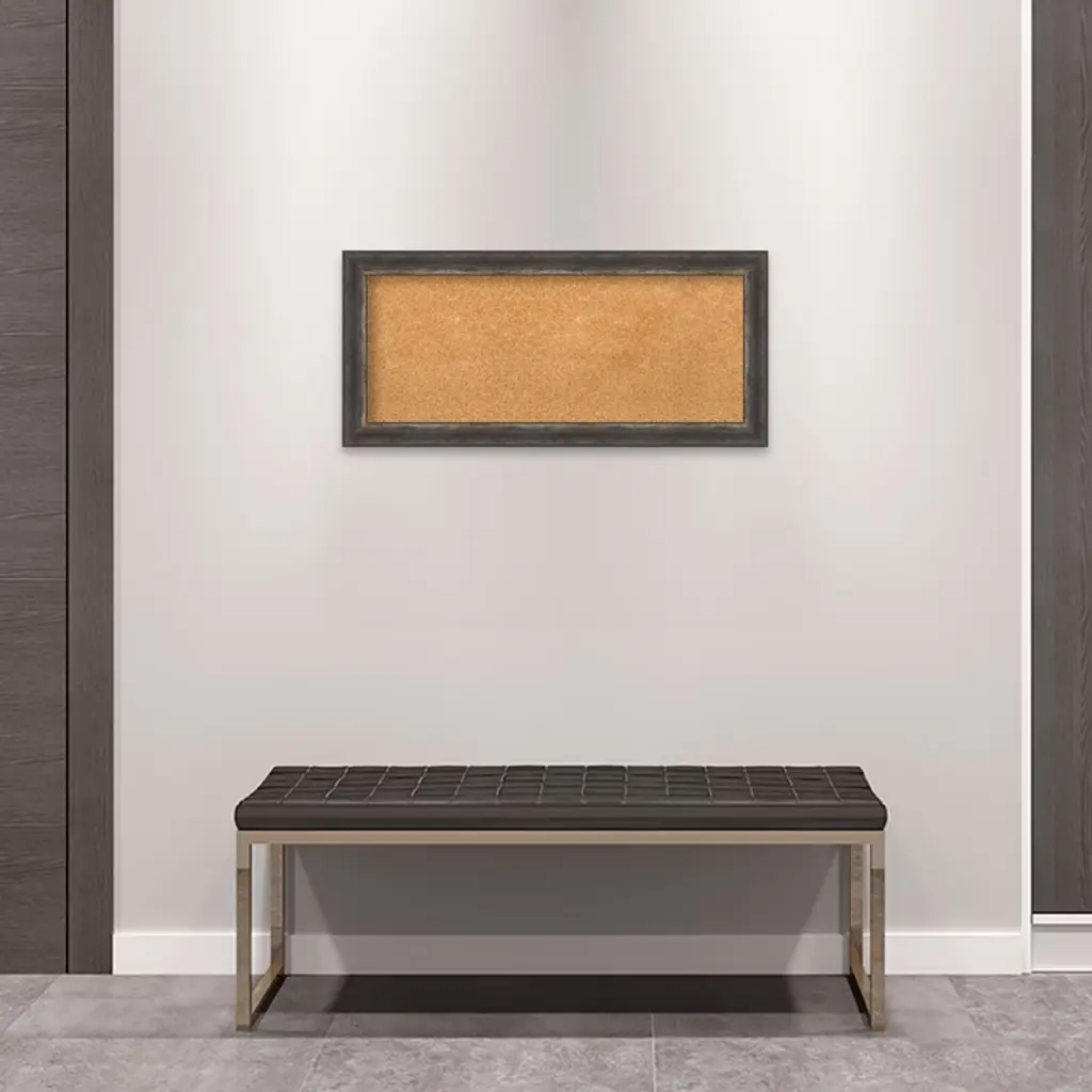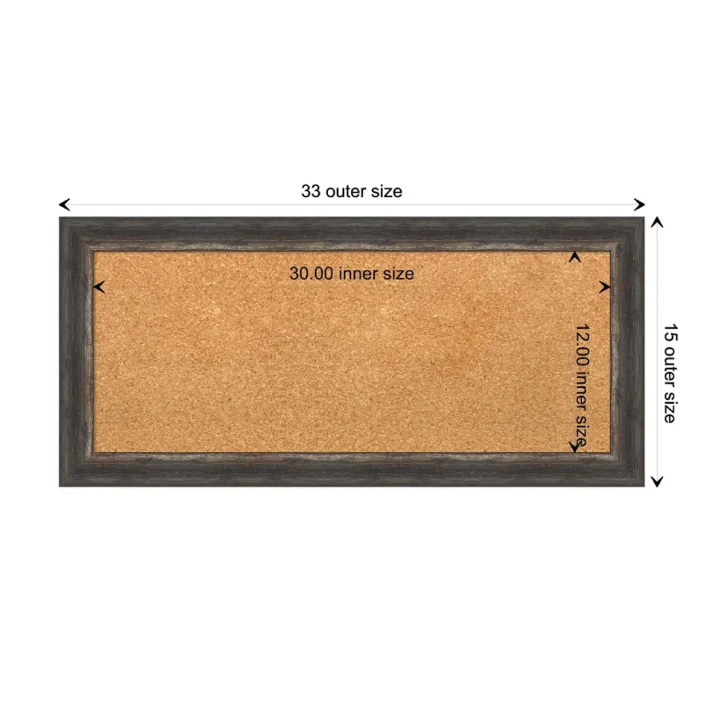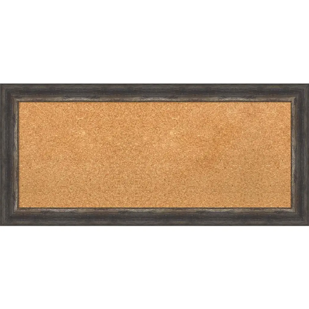 Amanti Art Natural Cork Board Framed Bark Rustic Char Narrow Bulletin Board 33 In. X 15 In.