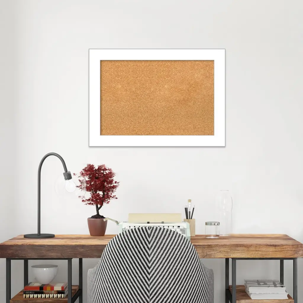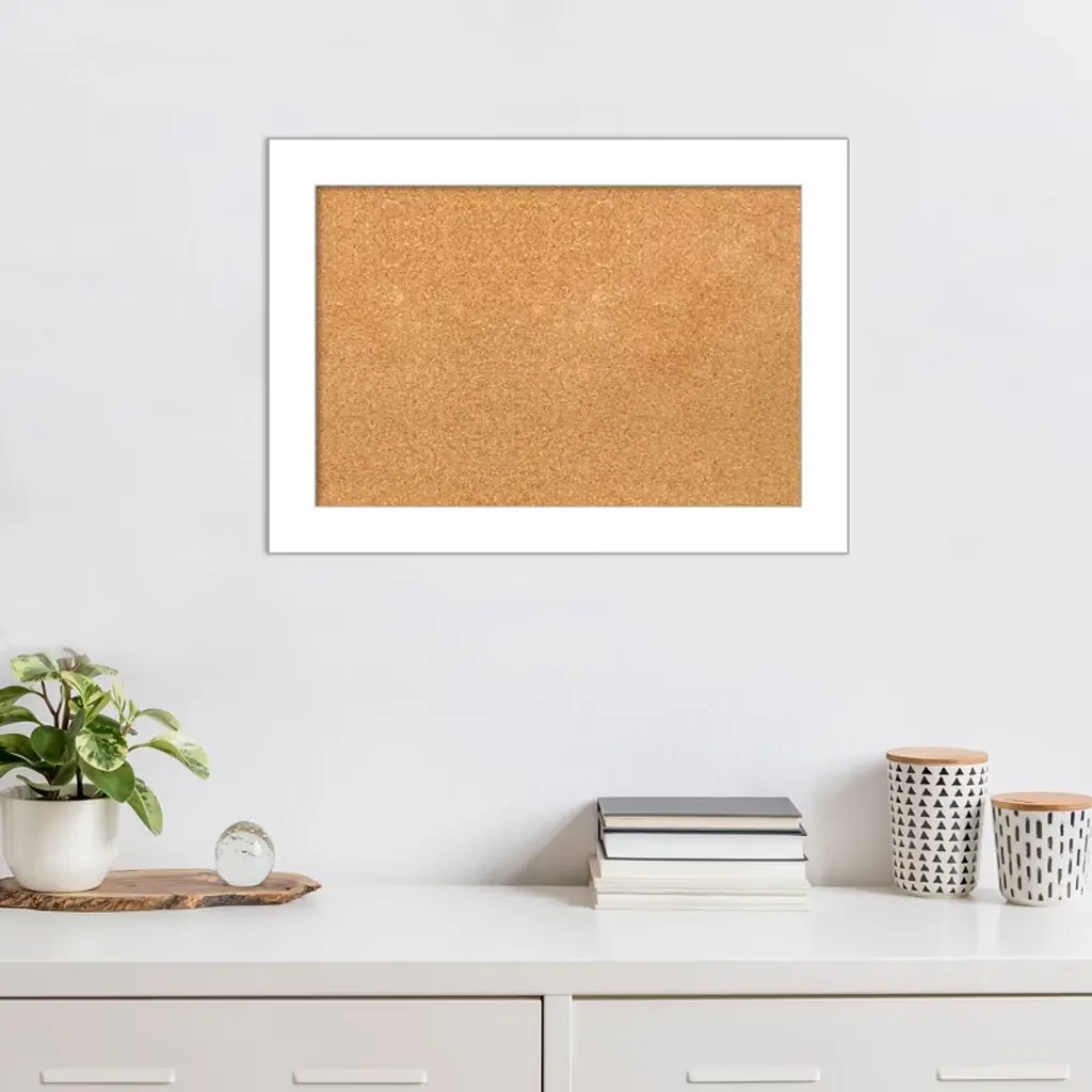 Turn everyday notes, reminders, and precious photos into a functional piece of art with the Amanti Art Cork Board. Perfect for a kitchen, entryway, or mudroom, this Natural corkboard features a Wedge White frame which is a contemporary satin white frame with a dramatic wedge-shaped profile. The bulletin board uses a natural, renewable material that is thick enough to push pins fully into the board and stay in place. Pins are not included. Organize to-dos, notes, calendars, coupons, or artwork in your kitchen, entryway, mudroom, or laundry room. Individually made using traditional custom framing techniques, it has the quality you expect from your local frame shop. Because of our attention to detail and focus on artistry, architects, interior designers, and homeowners alike choose this corkboard to create beautiful living spaces.