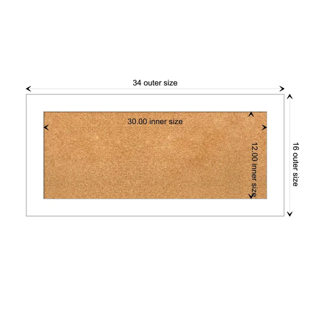 Amanti Art Natural Cork Board Framed Wedge White Bulletin Board 34 In. X 16 In.