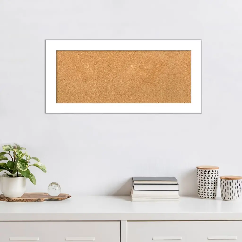 Turn everyday notes, reminders, and precious photos into a functional piece of art with the Amanti Art Cork Board. Perfect for a kitchen, entryway, or mudroom, this Natural corkboard features a Wedge White frame which is a contemporary satin white frame with a dramatic wedge-shaped profile. The bulletin board uses a natural, renewable material that is thick enough to push pins fully into the board and stay in place. Pins are not included. Organize to-dos, notes, calendars, coupons, or artwork in your kitchen, entryway, mudroom, or laundry room. Individually made using traditional custom framing techniques, it has the quality you expect from your local frame shop. Because of our attention to detail and focus on artistry, architects, interior designers, and homeowners alike choose this corkboard to create beautiful living spaces.