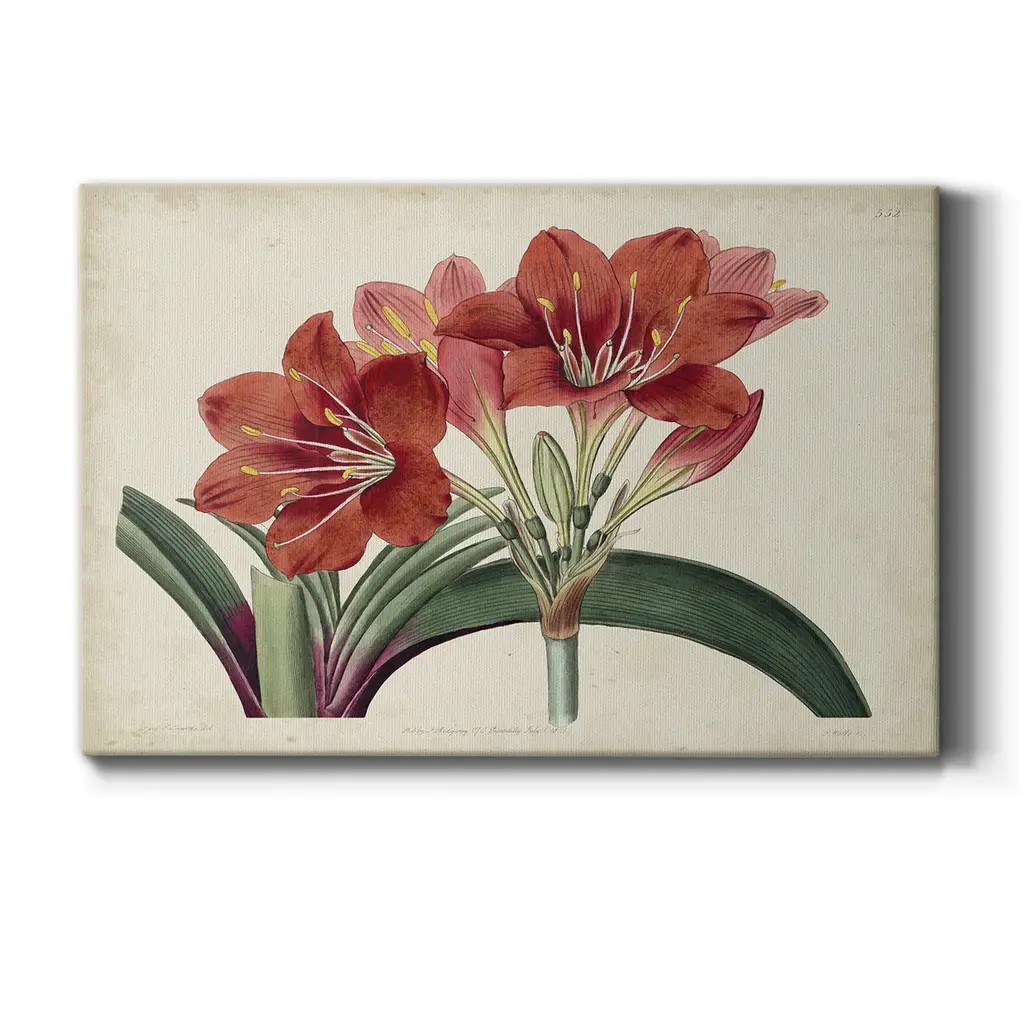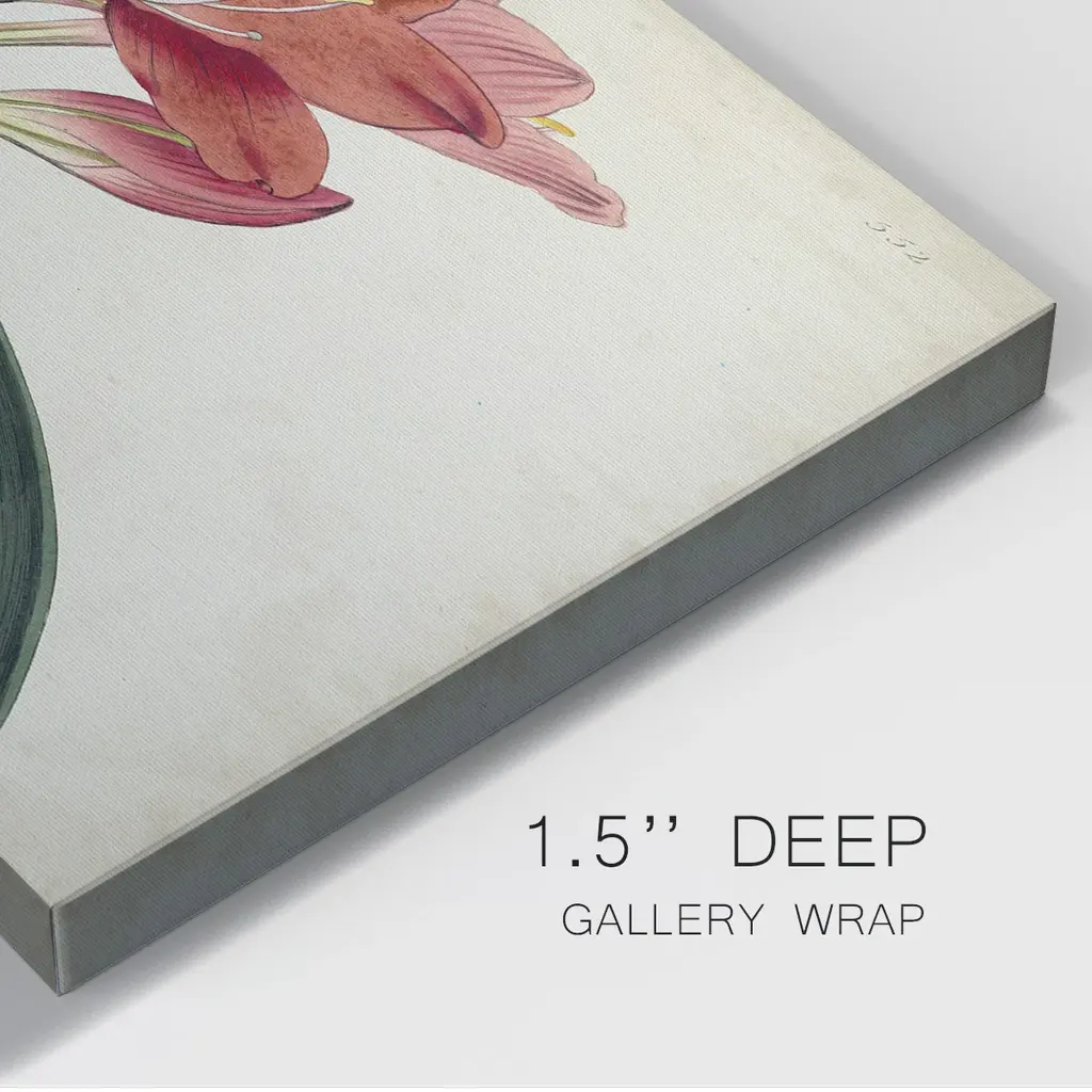 Amaryllis Splendor II Premium Gallery Wrapped Canvas - Ready to Hang A premium hand stretched gallery wrapped canvas print created to last. Featuring a beveled a solid wood stretcher bar, each piece comes ready to hand 6 SIZES AVAILABLE 8''X12'' - Overall Size 12''X18'' - Overall Size 18''X27'' - Overall Size 24''x36'' - Overall Size 32''x48'' - Overall Size 40''x60'' - Overall Size Each piece is made to order. Built to Last Each piece comes ready to hang Solid wood stretcher Fade and Water resistant Made domestically