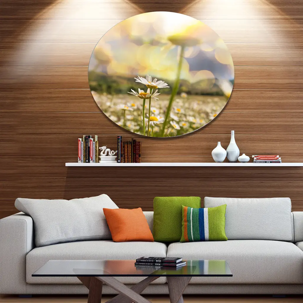 Amazing Chamomile Flower Field, Floral Round Metal Wall Art, 23"