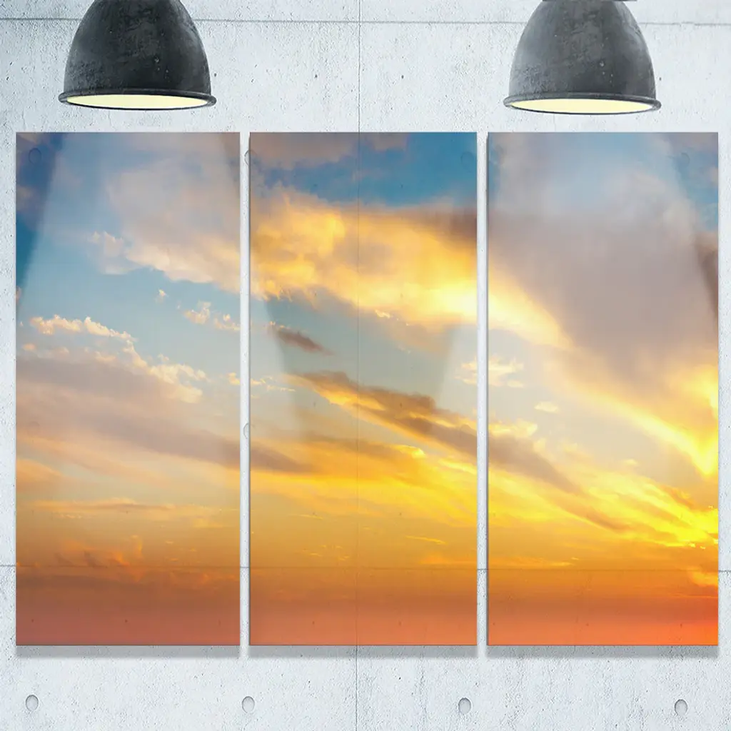 "Amazing Golden Sky At Sunset" Metal Wall Art, 3 Panels, 36"x28"