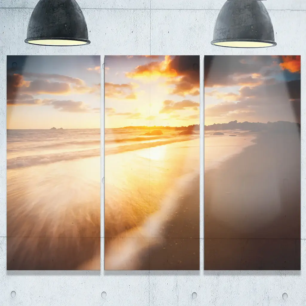 "Amazing Sunrise Over Australian Beach" Metal Wall Art, 3 Panels, 36"x28"