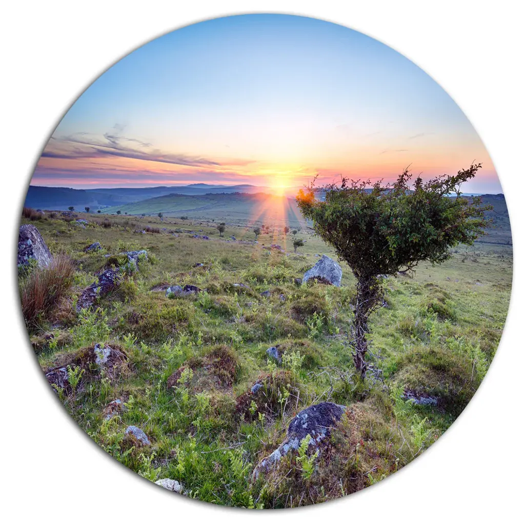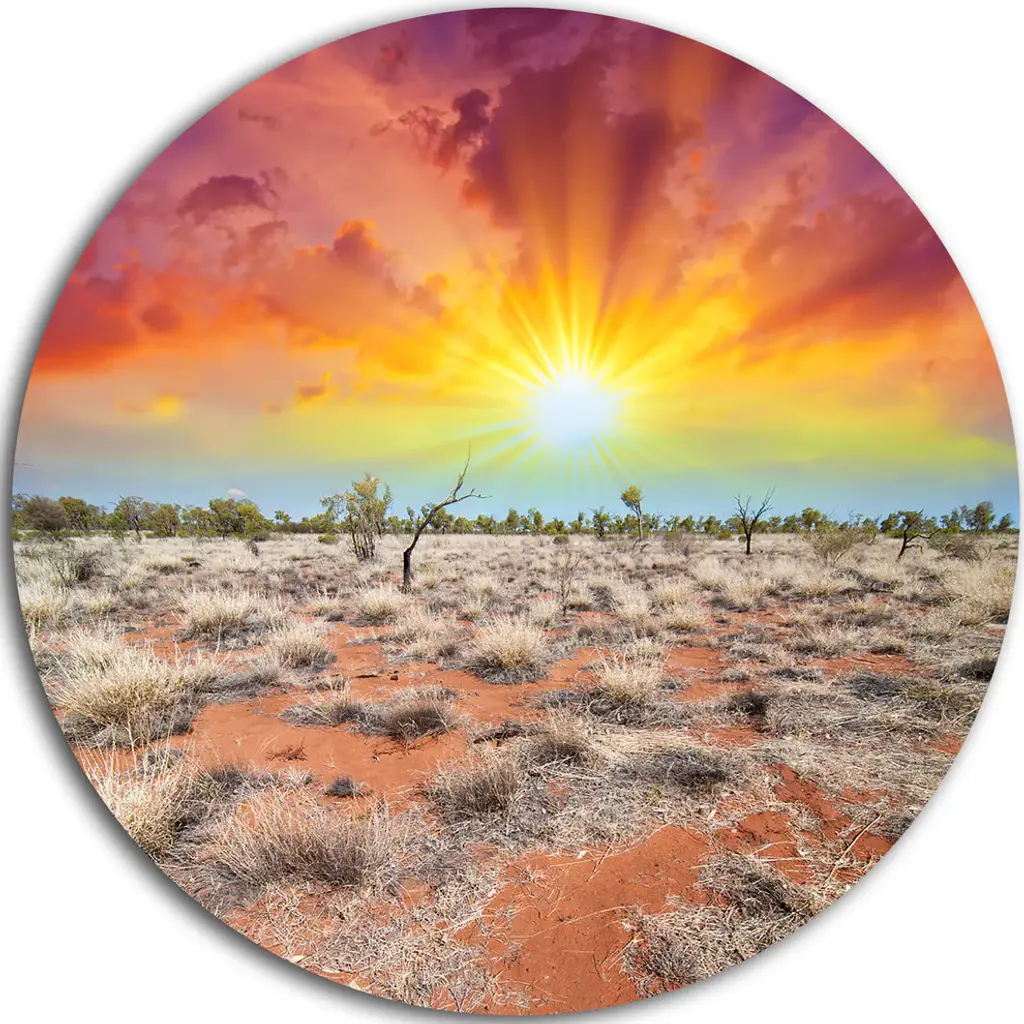 Bring Contemporary Abstraction to your home with this large Circle Metal wall art. This Amazing View of African Landscape Metal Artwork makes it the focal point of any room or office. - White Gloss Coating ensures colors are extra vibrant with light reflection.- Aluminum grade Sheet Metal with 1 inch mounting frame on the back giving the illusion that the artwork is floating on the wall..- Mounting Brackets are included along with instructions.- High Quality Digital images are created directly into a glossy aluminum panel producing a stunning and captivating print into the glossy finish of the metal.- Water, Fire and Scratch resistant HD Aluminum panels.- Looks better than any photo paper and guaranteed to last at least 20 years- Easy to clean with a microfiber cloth. Colors are far superior to regular Canvas Art. - Easy to Hang